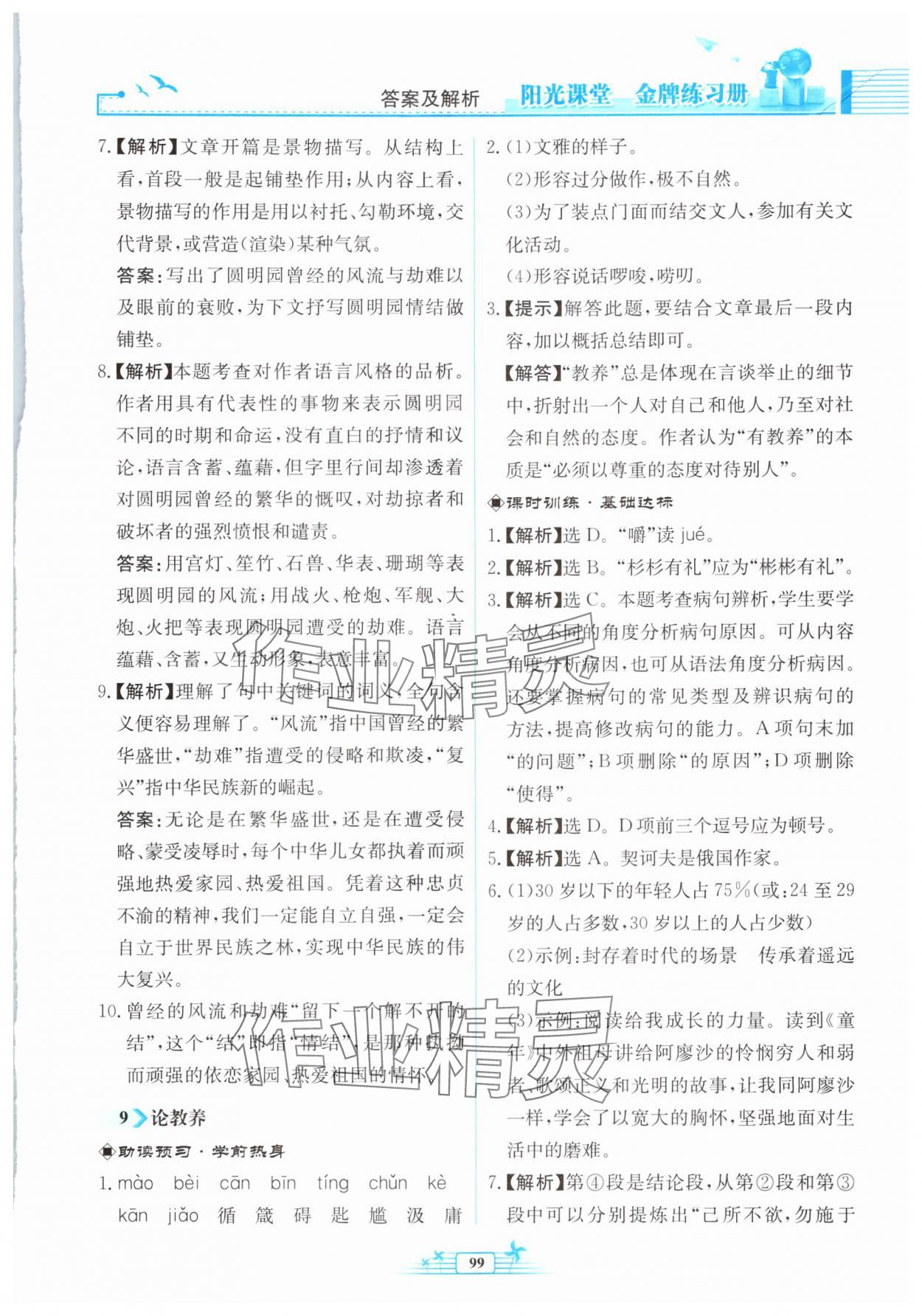 注:目前有些书本章节名称可能整理的还不是很完善,但都是按照顺序排列的,请同学们按照顺序仔细查找。练习册 2024年阳光课堂金牌练习册九年级语文上册人教版福建专版 答案主要是用来给同学们做完题方便对答案用的,请勿直接抄袭。