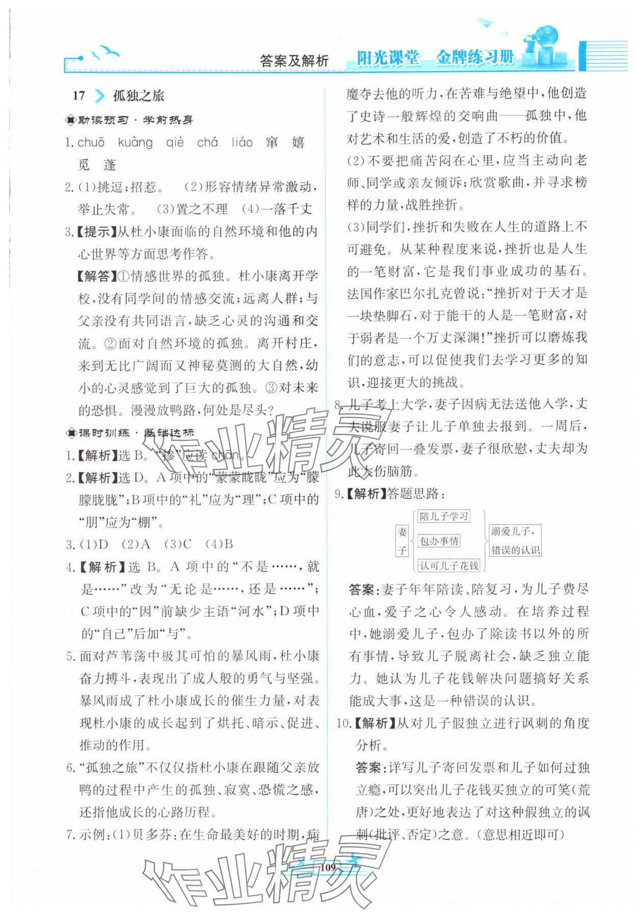 注:目前有些书本章节名称可能整理的还不是很完善,但都是按照顺序排列的,请同学们按照顺序仔细查找。练习册 2024年阳光课堂金牌练习册九年级语文上册人教版福建专版 答案主要是用来给同学们做完题方便对答案用的,请勿直接抄袭。