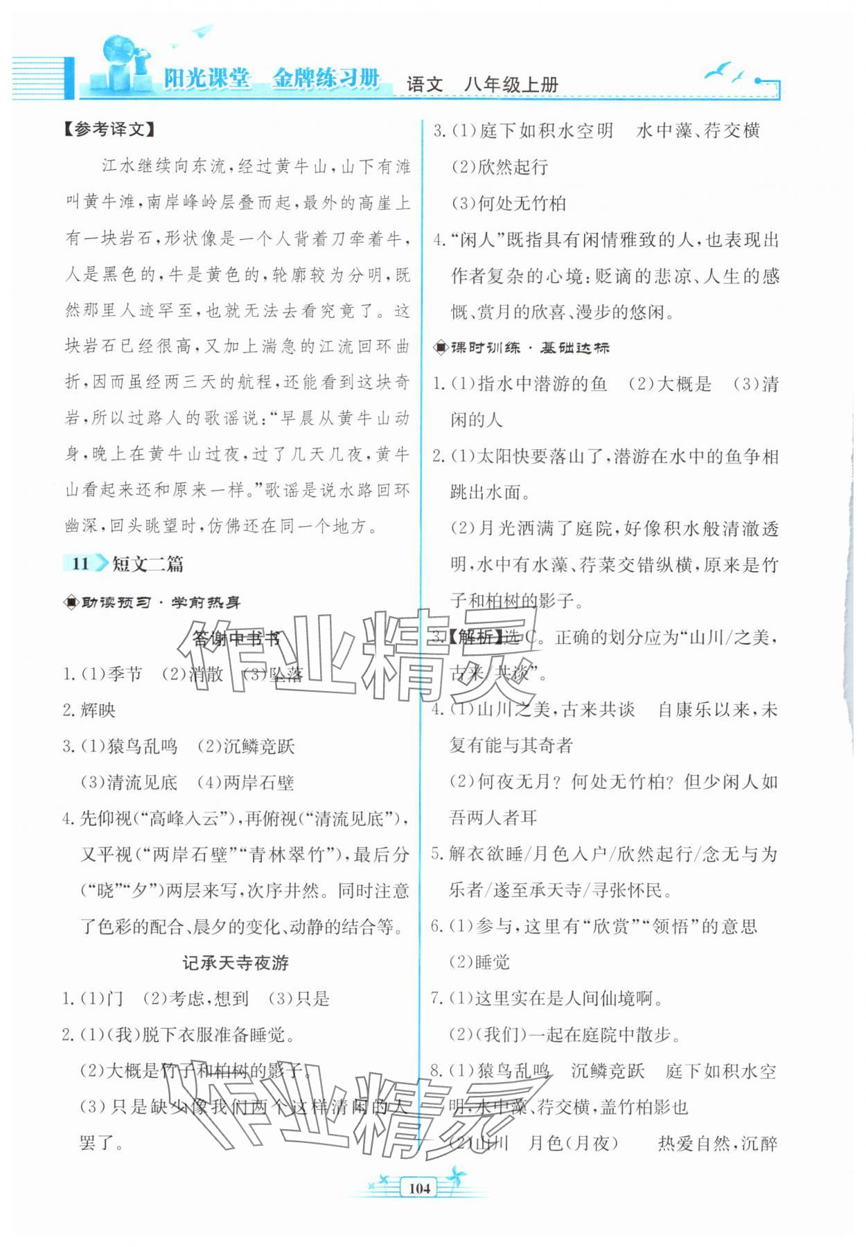 注:目前有些书本章节名称可能整理的还不是很完善,但都是按照顺序排列的,请同学们按照顺序仔细查找。练习册 2024年阳光课堂金牌练习册八年级语文上册人教版福建专版 答案主要是用来给同学们做完题方便对答案用的,请勿直接抄袭。