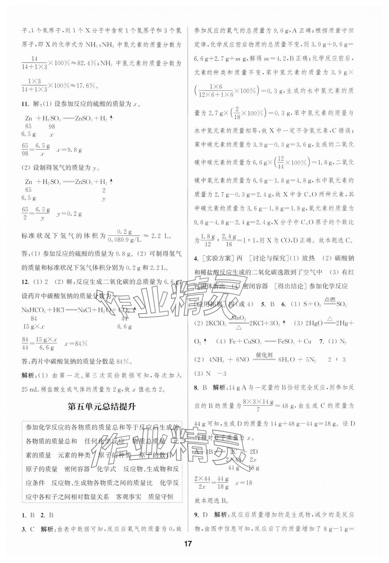 《2024年通城学典课时作业本九年级化学上册人教版天津专版》