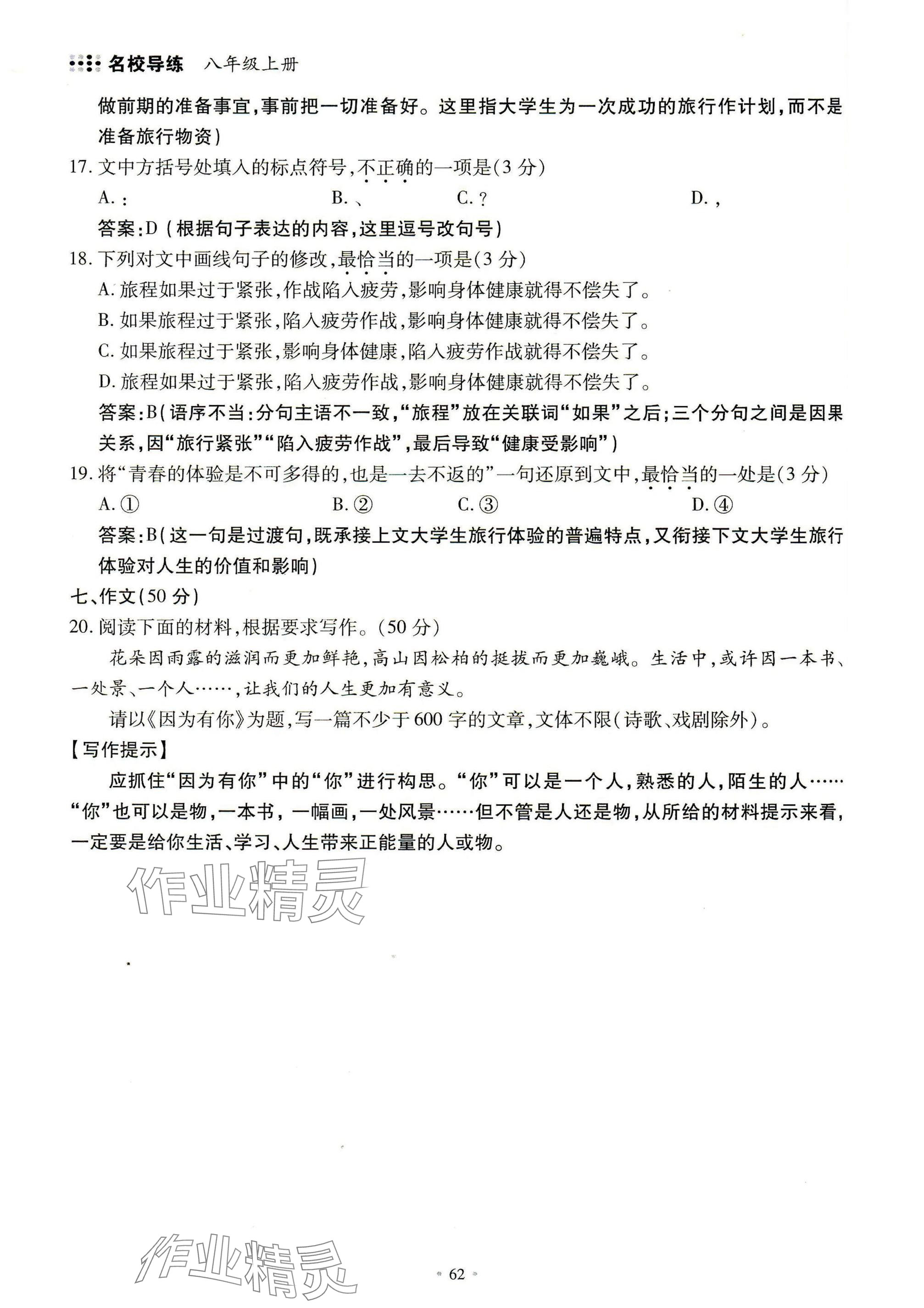 注:目前有些书本章节名称可能整理的还不是很完善,但都是按照顺序排列的,请同学们按照顺序仔细查找。练习册 2024年名校导练八年级语文上册人教版 答案主要是用来给同学们做完题方便对答案用的,请勿直接抄袭。