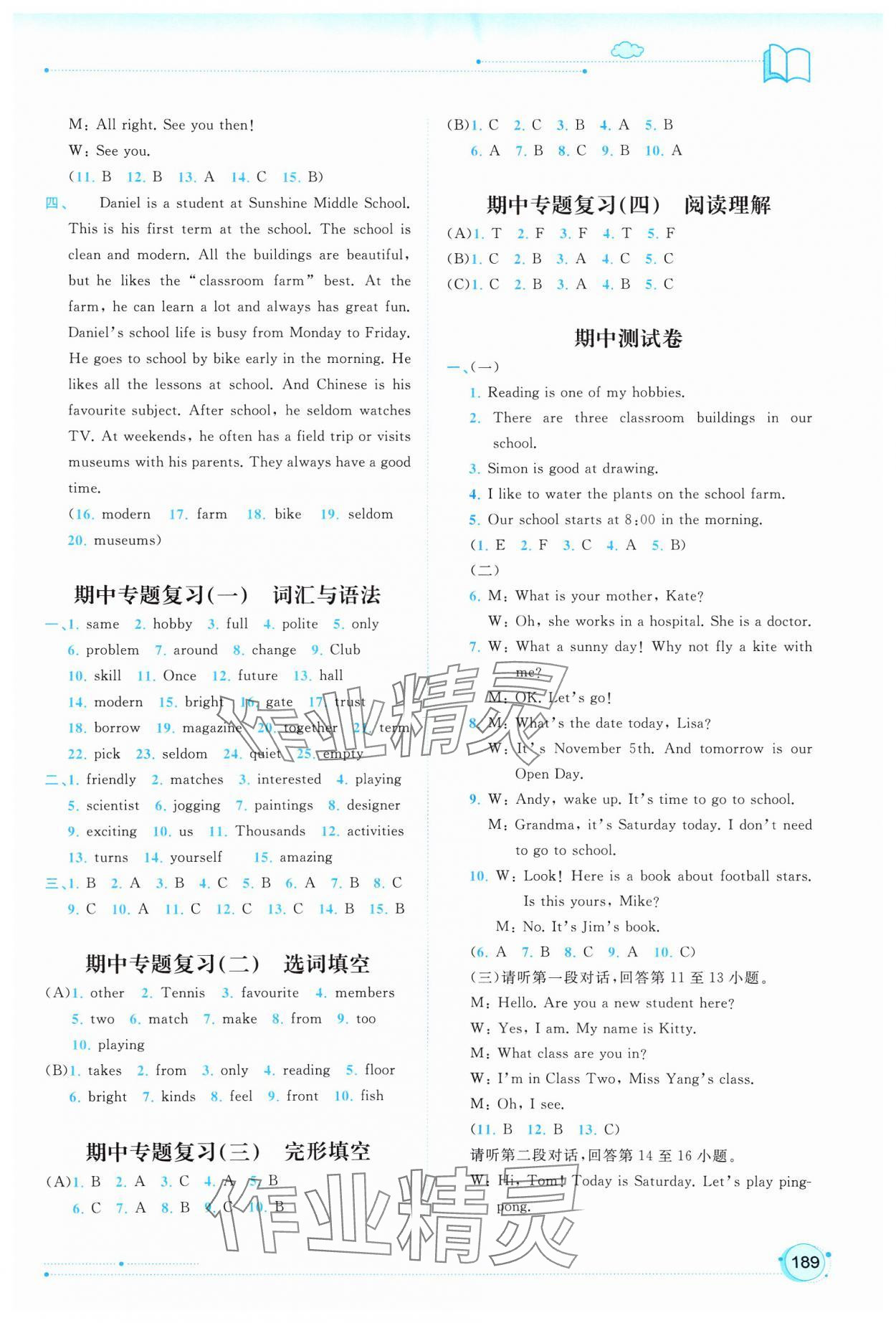 注:目前有些书本章节名称可能整理的还不是很完善,但都是按照顺序排列的,请同学们按照顺序仔细查找。练习册 2024年新课程学习与测评同步学习七年级英语上册译林版 答案主要是用来给同学们做完题方便对答案用的,请勿直接抄袭。