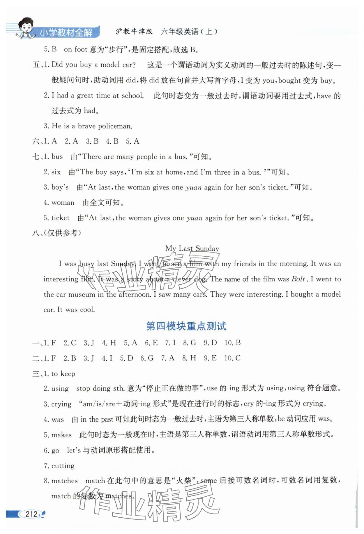 注:目前有些书本章节名称可能整理的还不是很完善,但都是按照顺序排列的,请同学们按照顺序仔细查找。练习册 2024年小学教材全解六年级英语上册沪教牛津版三起 答案主要是用来给同学们做完题方便对答案用的,请勿直接抄袭。