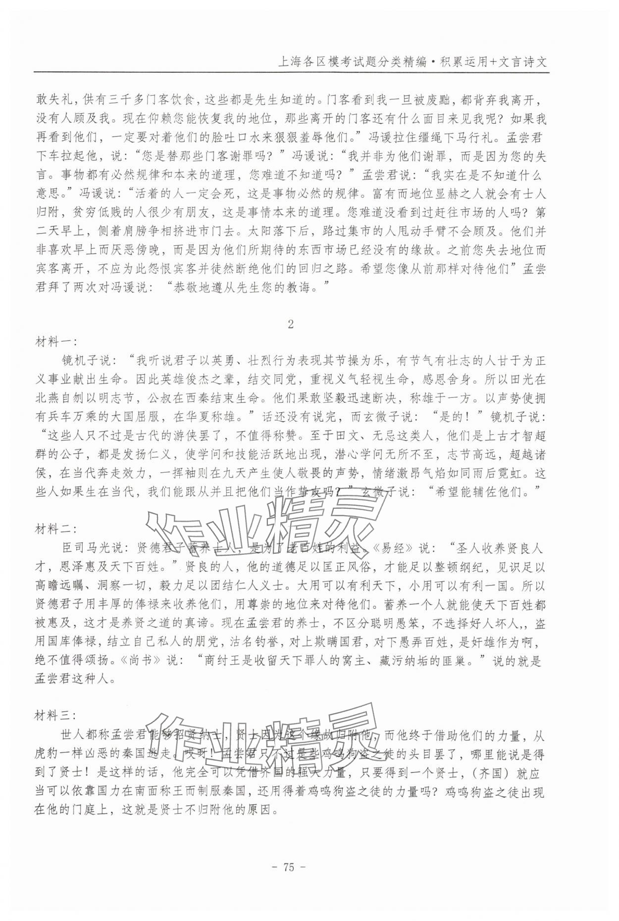 2024年上海各区模考试题分类精编九年级语文全一册人教版
