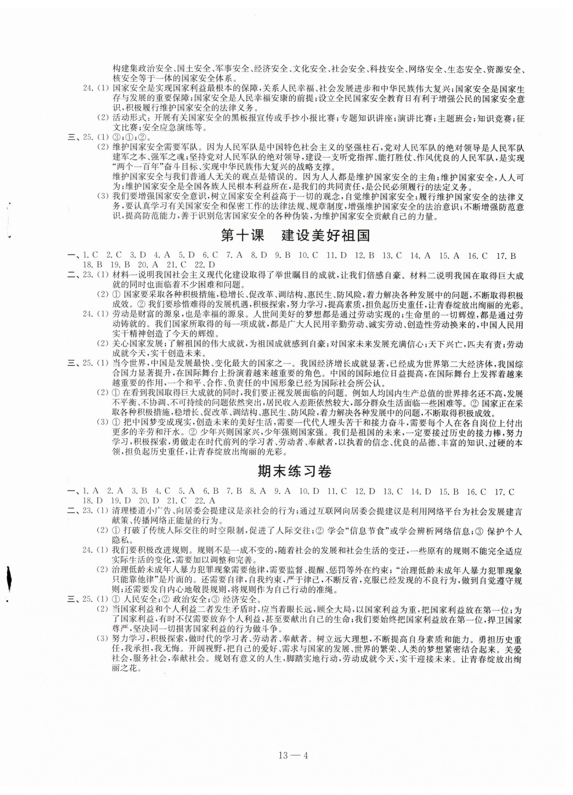 注:目前有些书本章节名称可能整理的还不是很完善,但都是按照顺序排列的,请同学们按照顺序仔细查找。练习册 2024年同步练习配套试卷八年级道德与法治上册人教版 答案主要是用来给同学们做完题方便对答案用的,请勿直接抄袭。