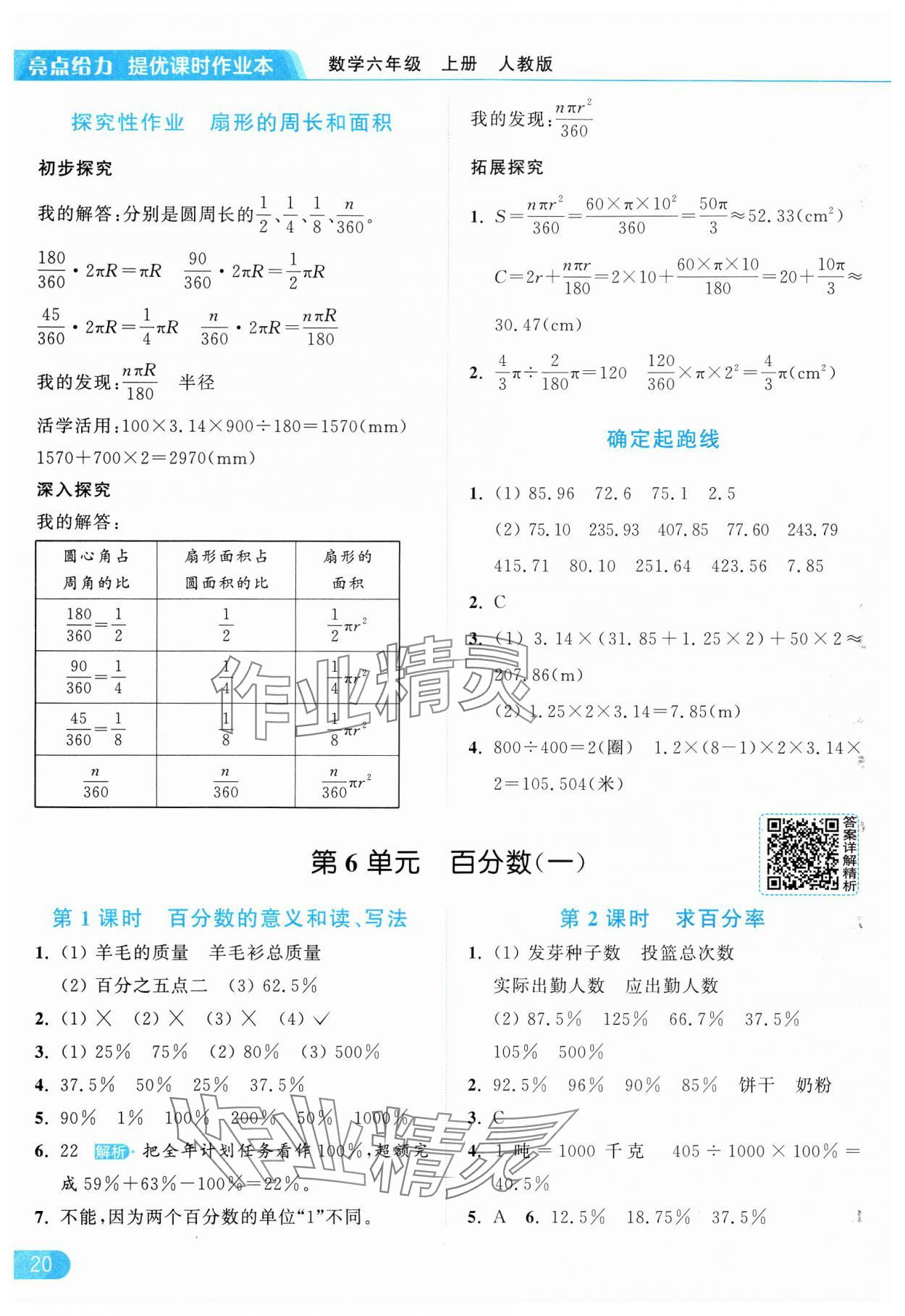 2024年亮点给力提优课时作业本六年级数学上册人教版