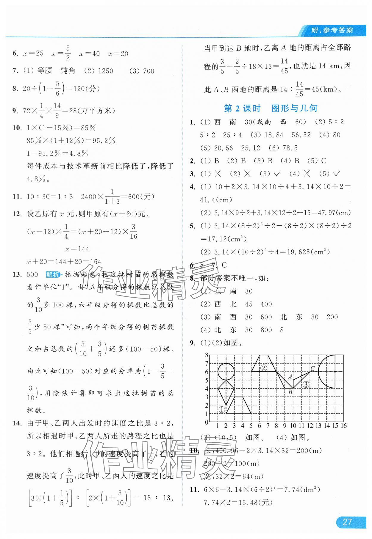注:目前有些书本章节名称可能整理的还不是很完善,但都是按照顺序排列的,请同学们按照顺序仔细查找。练习册 2024年亮点给力提优课时作业本六年级数学上册人教版 答案主要是用来给同学们做完题方便对答案用的,请勿直接抄袭。