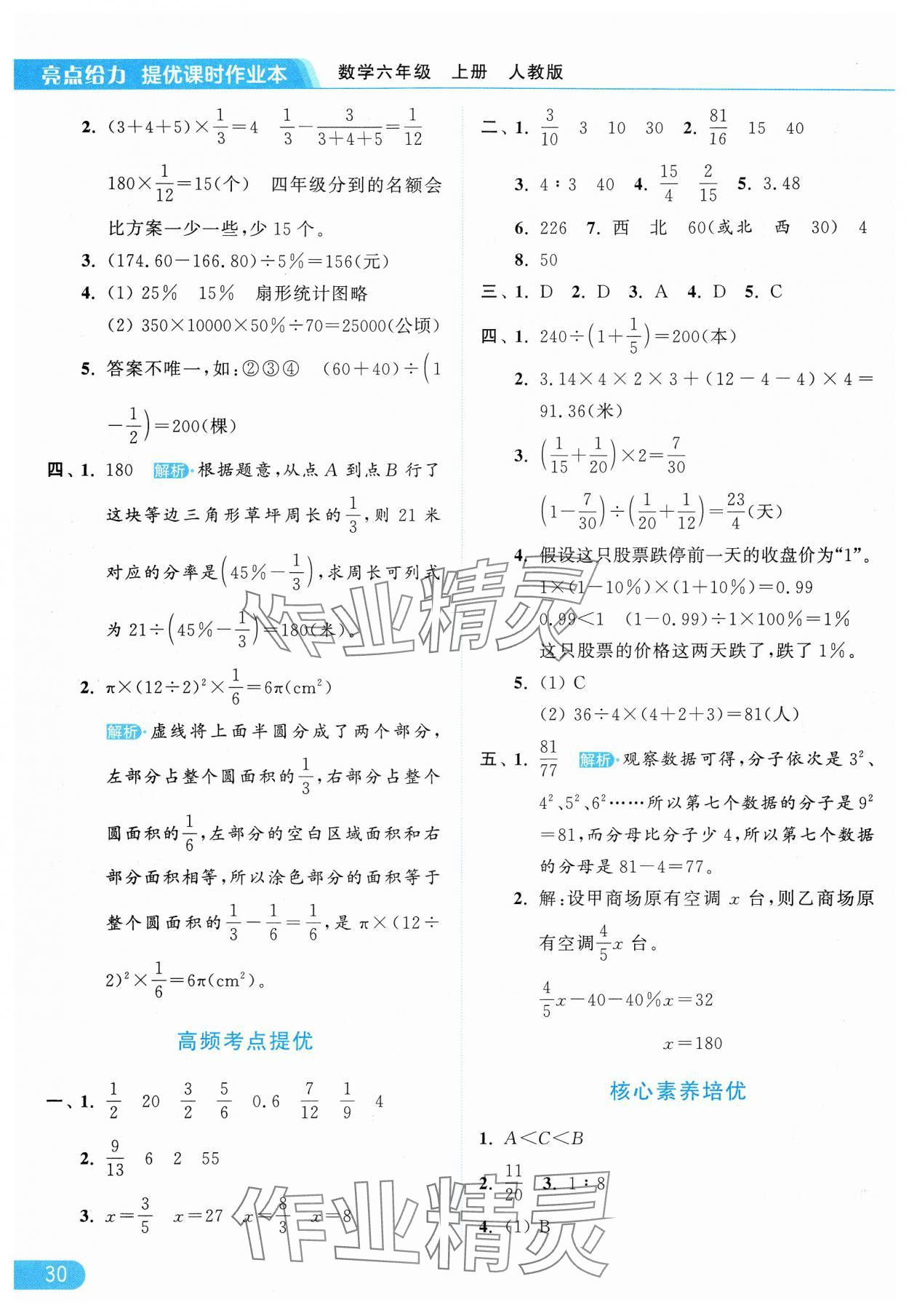 注:目前有些书本章节名称可能整理的还不是很完善,但都是按照顺序排列的,请同学们按照顺序仔细查找。练习册 2024年亮点给力提优课时作业本六年级数学上册人教版 答案主要是用来给同学们做完题方便对答案用的,请勿直接抄袭。