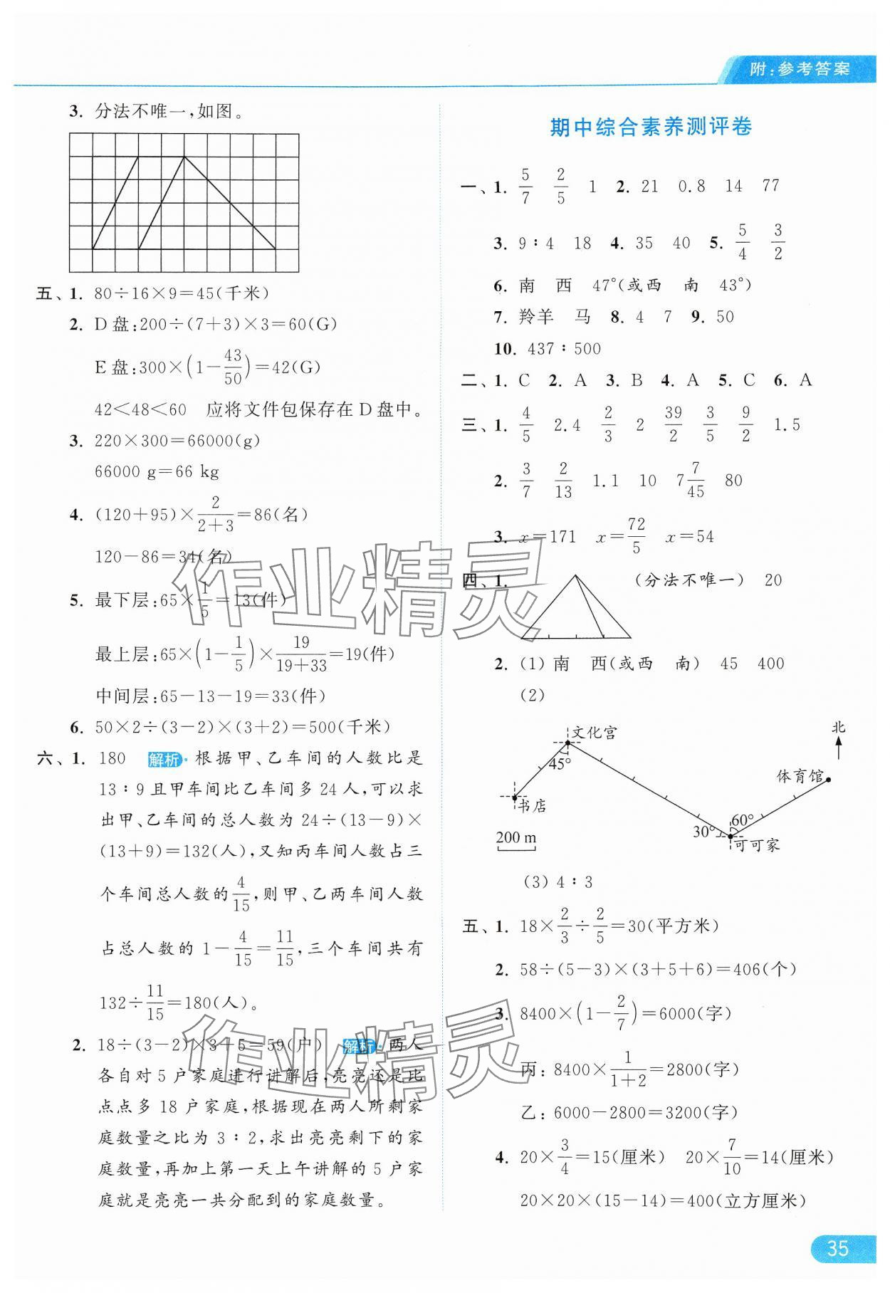 注:目前有些书本章节名称可能整理的还不是很完善,但都是按照顺序排列的,请同学们按照顺序仔细查找。练习册 2024年亮点给力提优课时作业本六年级数学上册人教版 答案主要是用来给同学们做完题方便对答案用的,请勿直接抄袭。