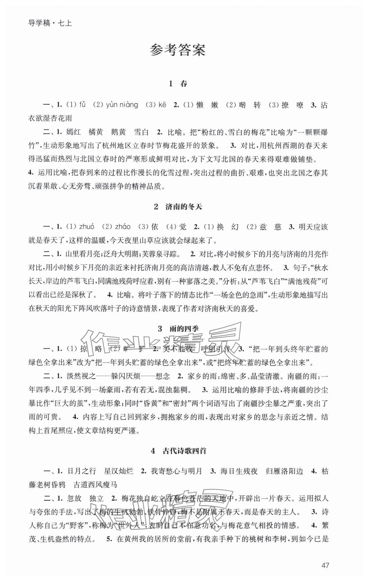 注:目前有些书本章节名称可能整理的还不是很完善,但都是按照顺序排列的,请同学们按照顺序仔细查找。练习册 2024年凤凰数字化导学稿七年级语文上册人教版 答案主要是用来给同学们做完题方便对答案用的,请勿直接抄袭。