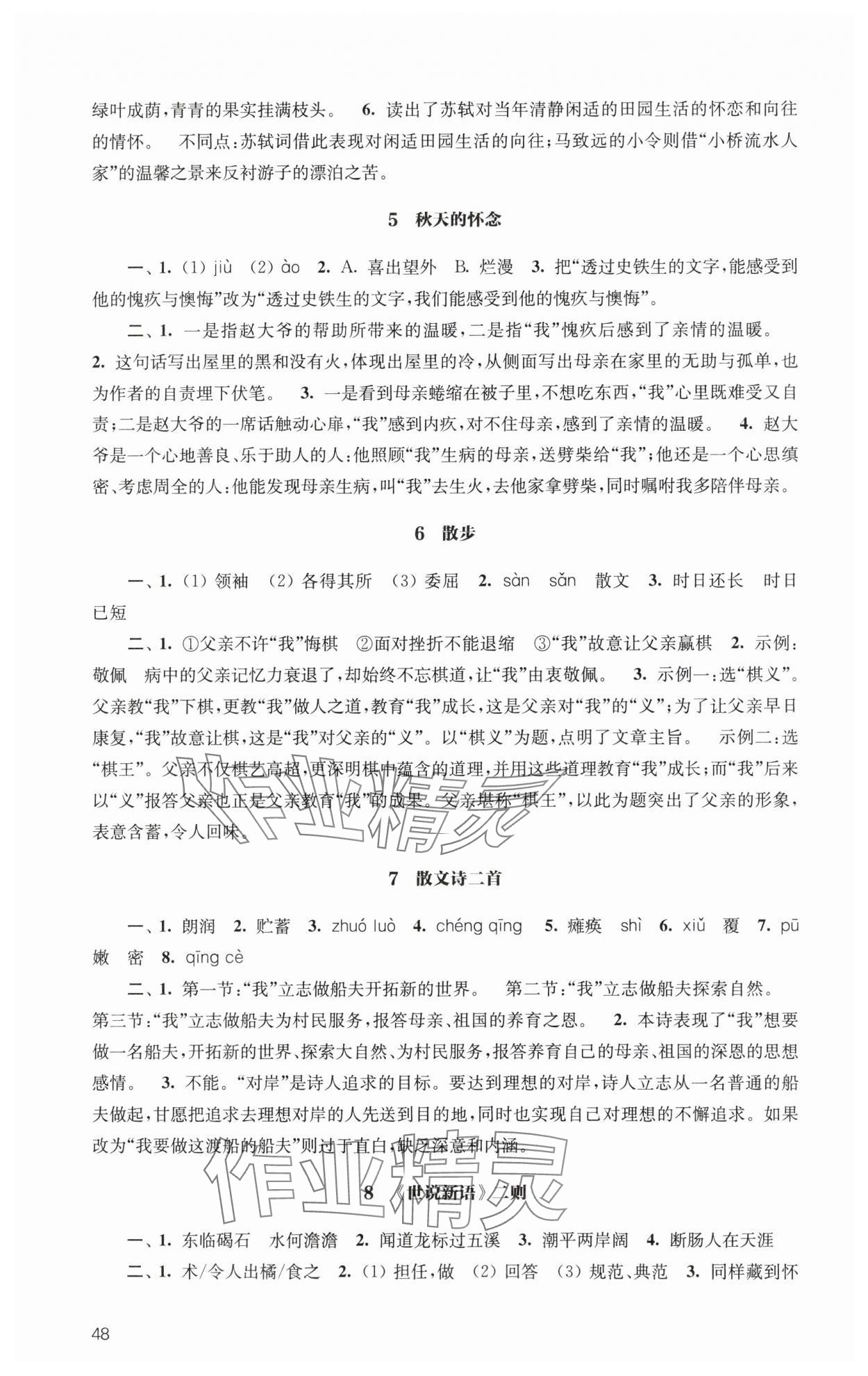 注:目前有些书本章节名称可能整理的还不是很完善,但都是按照顺序排列的,请同学们按照顺序仔细查找。练习册 2024年凤凰数字化导学稿七年级语文上册人教版 答案主要是用来给同学们做完题方便对答案用的,请勿直接抄袭。