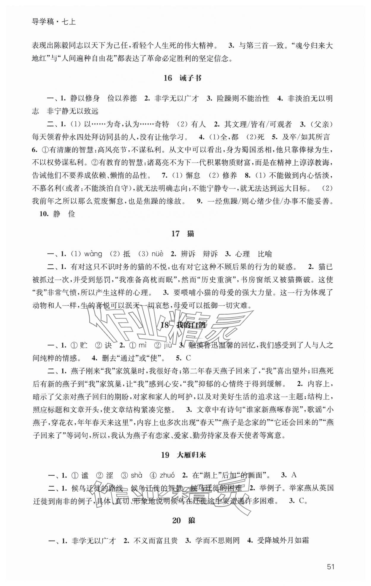 注:目前有些书本章节名称可能整理的还不是很完善,但都是按照顺序排列的,请同学们按照顺序仔细查找。练习册 2024年凤凰数字化导学稿七年级语文上册人教版 答案主要是用来给同学们做完题方便对答案用的,请勿直接抄袭。