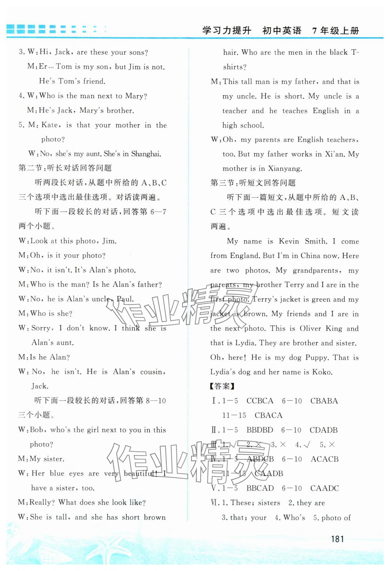 注:目前有些书本章节名称可能整理的还不是很完善,但都是按照顺序排列的,请同学们按照顺序仔细查找。练习册 2024年学习力提升七年级英语上册人教版 答案主要是用来给同学们做完题方便对答案用的,请勿直接抄袭。