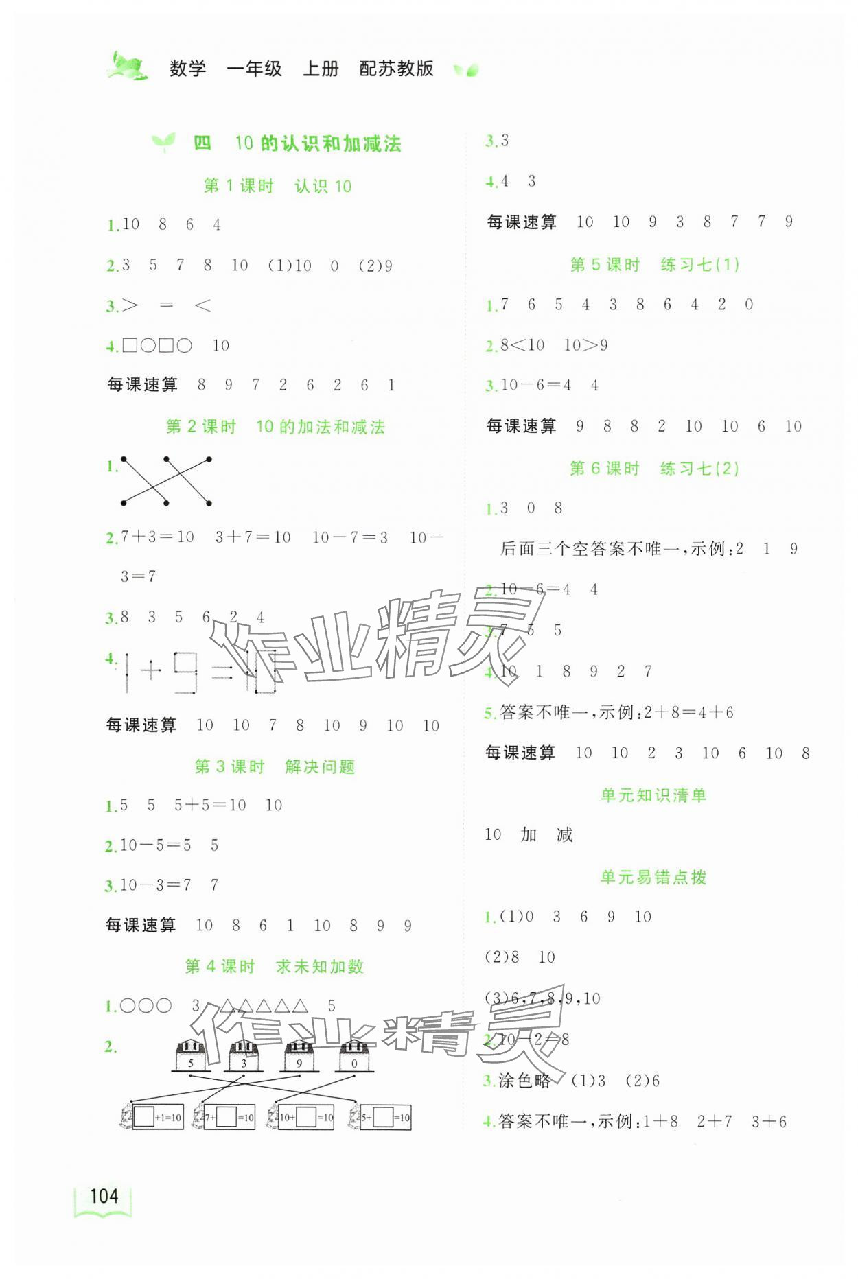 注:目前有些书本章节名称可能整理的还不是很完善,但都是按照顺序排列的,请同学们按照顺序仔细查找。练习册 2024年新课程学习与测评同步学习一年级数学上册苏教版 答案主要是用来给同学们做完题方便对答案用的,请勿直接抄袭。