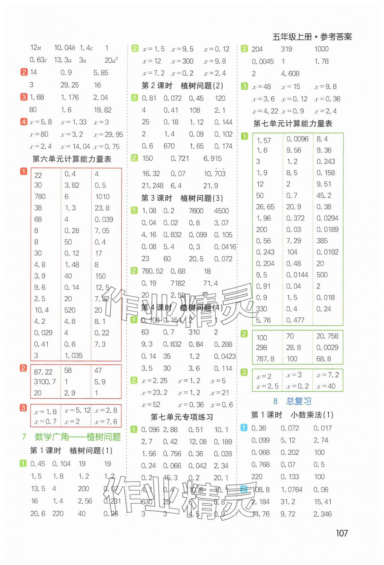 注:目前有些书本章节名称可能整理的还不是很完善,但都是按照顺序排列的,请同学们按照顺序仔细查找。练习册 2024年七彩课堂计算天天练五年级数学上册人教版 答案主要是用来给同学们做完题方便对答案用的,请勿直接抄袭。