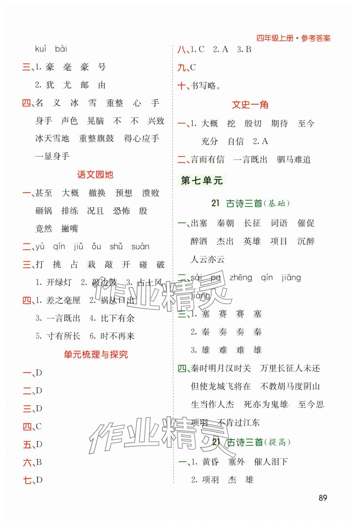 注:目前有些书本章节名称可能整理的还不是很完善,但都是按照顺序排列的,请同学们按照顺序仔细查找。练习册 2024年七彩课堂默写天天练四年级语文上册人教版 答案主要是用来给同学们做完题方便对答案用的,请勿直接抄袭。