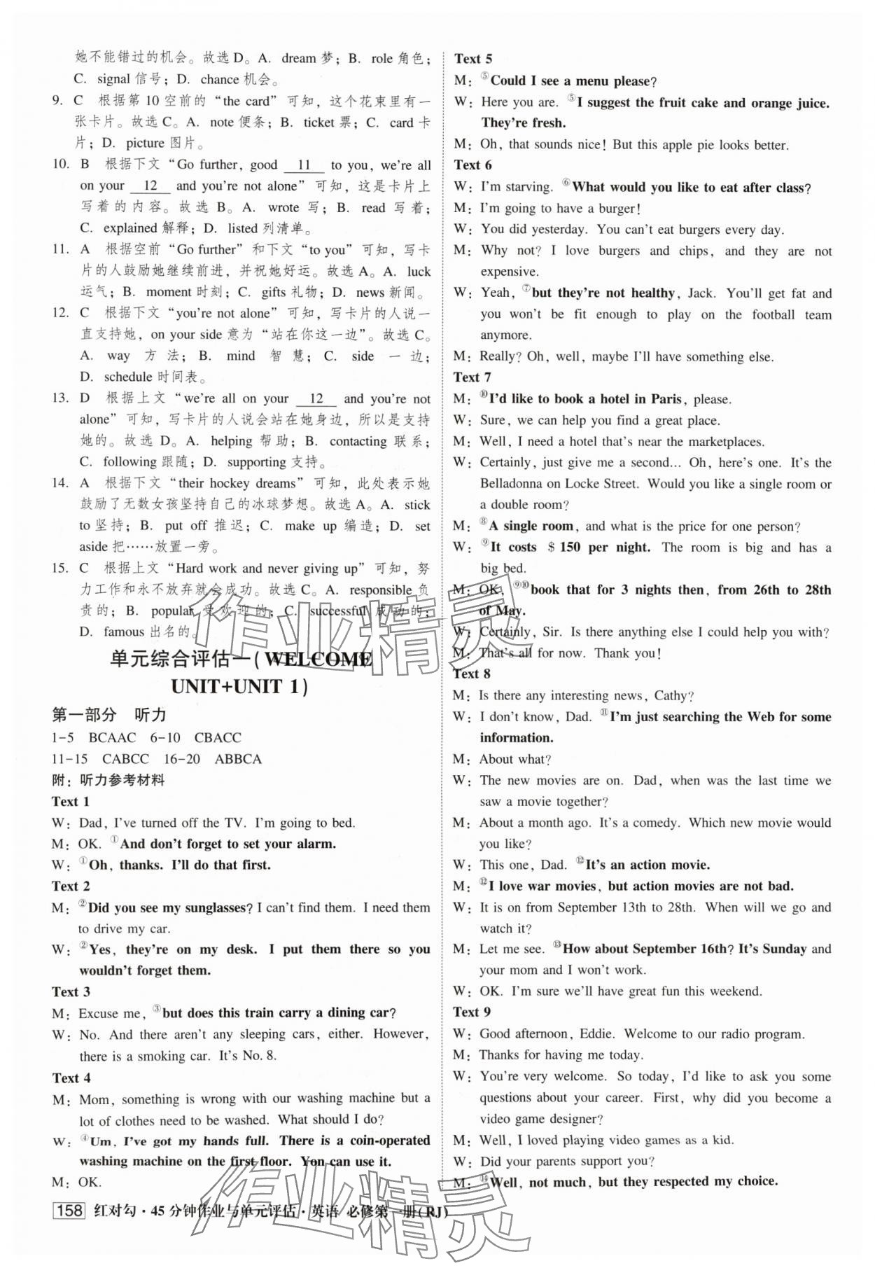 注:目前有些书本章节名称可能整理的还不是很完善,但都是按照顺序排列的,请同学们按照顺序仔细查找。练习册 2024年红对勾45分钟作业与单元评估高中英语必修第一册人教版 答案主要是用来给同学们做完题方便对答案用的,请勿直接抄袭。