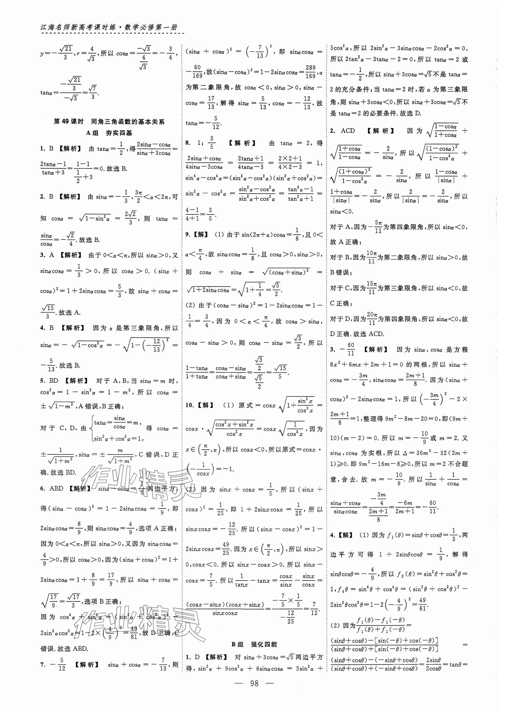 注:目前有些书本章节名称可能整理的还不是很完善,但都是按照顺序排列的,请同学们按照顺序仔细查找。练习册 2024年江海名师新高考课时练高中数学必修第一册 答案主要是用来给同学们做完题方便对答案用的,请勿直接抄袭。