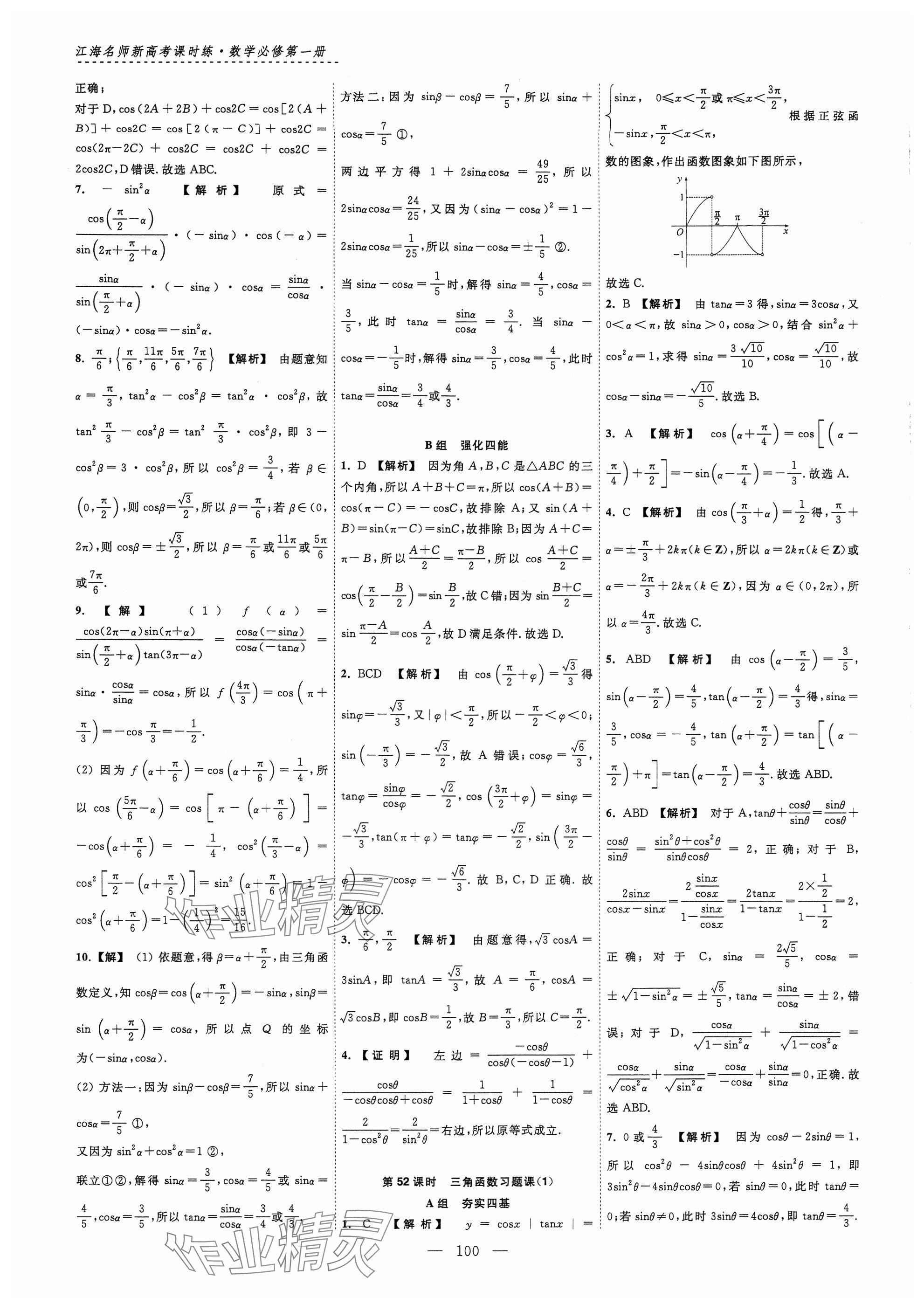 注:目前有些书本章节名称可能整理的还不是很完善,但都是按照顺序排列的,请同学们按照顺序仔细查找。练习册 2024年江海名师新高考课时练高中数学必修第一册 答案主要是用来给同学们做完题方便对答案用的,请勿直接抄袭。