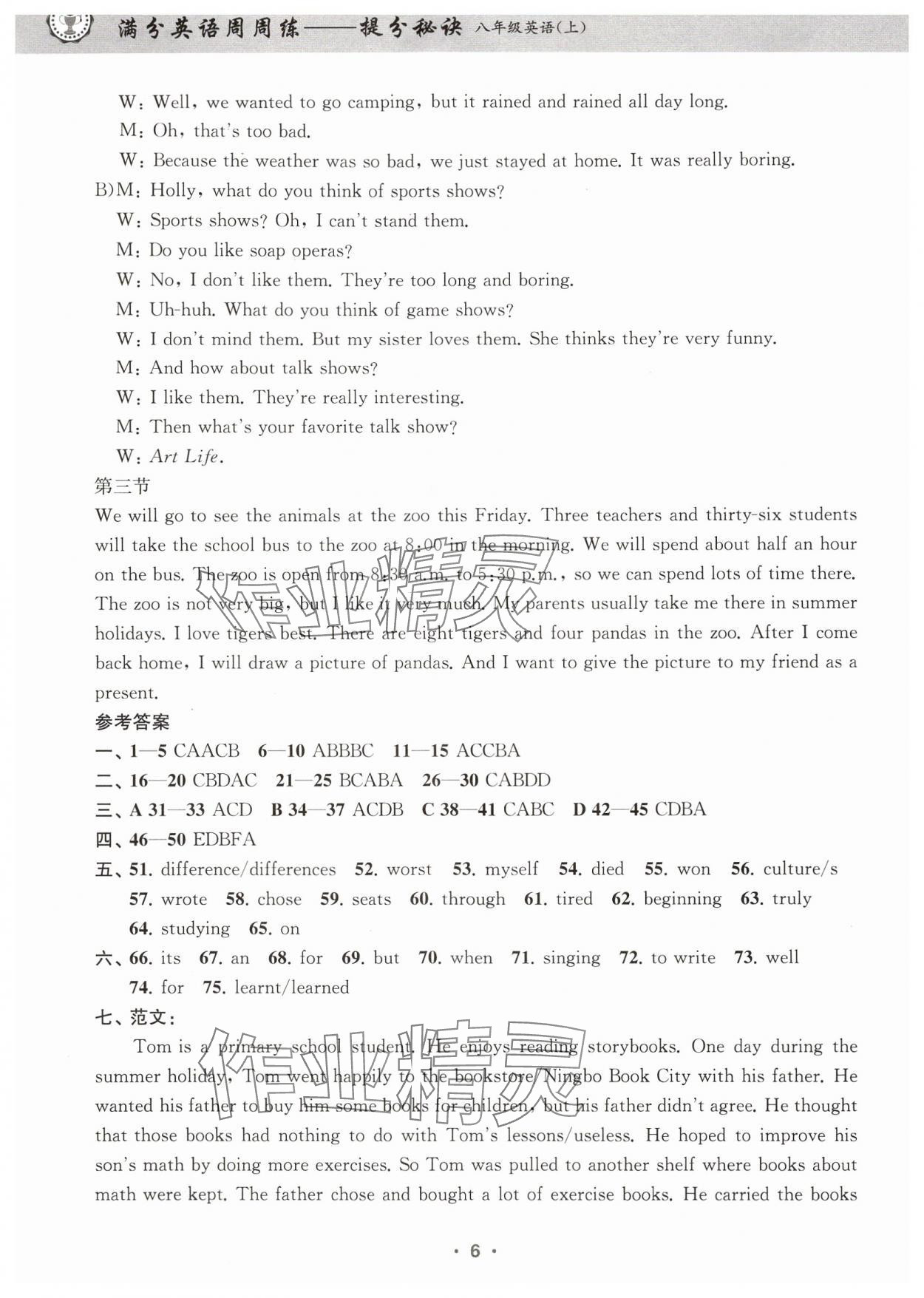 注:目前有些书本章节名称可能整理的还不是很完善,但都是按照顺序排列的,请同学们按照顺序仔细查找。练习册 2024年满分英语周周练八年级上册人教版 答案主要是用来给同学们做完题方便对答案用的,请勿直接抄袭。