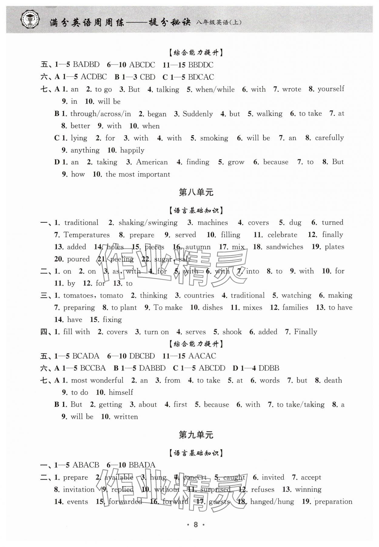 注:目前有些书本章节名称可能整理的还不是很完善,但都是按照顺序排列的,请同学们按照顺序仔细查找。练习册 2024年满分英语周周练八年级上册人教版 答案主要是用来给同学们做完题方便对答案用的,请勿直接抄袭。