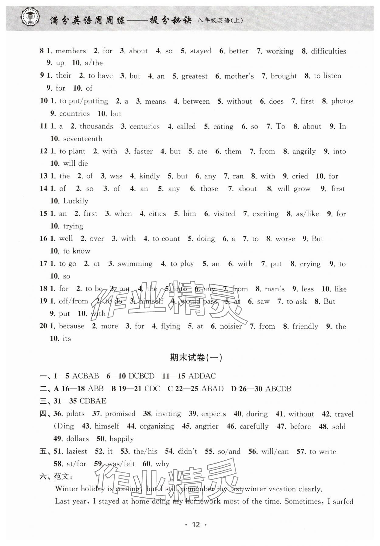 注:目前有些书本章节名称可能整理的还不是很完善,但都是按照顺序排列的,请同学们按照顺序仔细查找。练习册 2024年满分英语周周练八年级上册人教版 答案主要是用来给同学们做完题方便对答案用的,请勿直接抄袭。