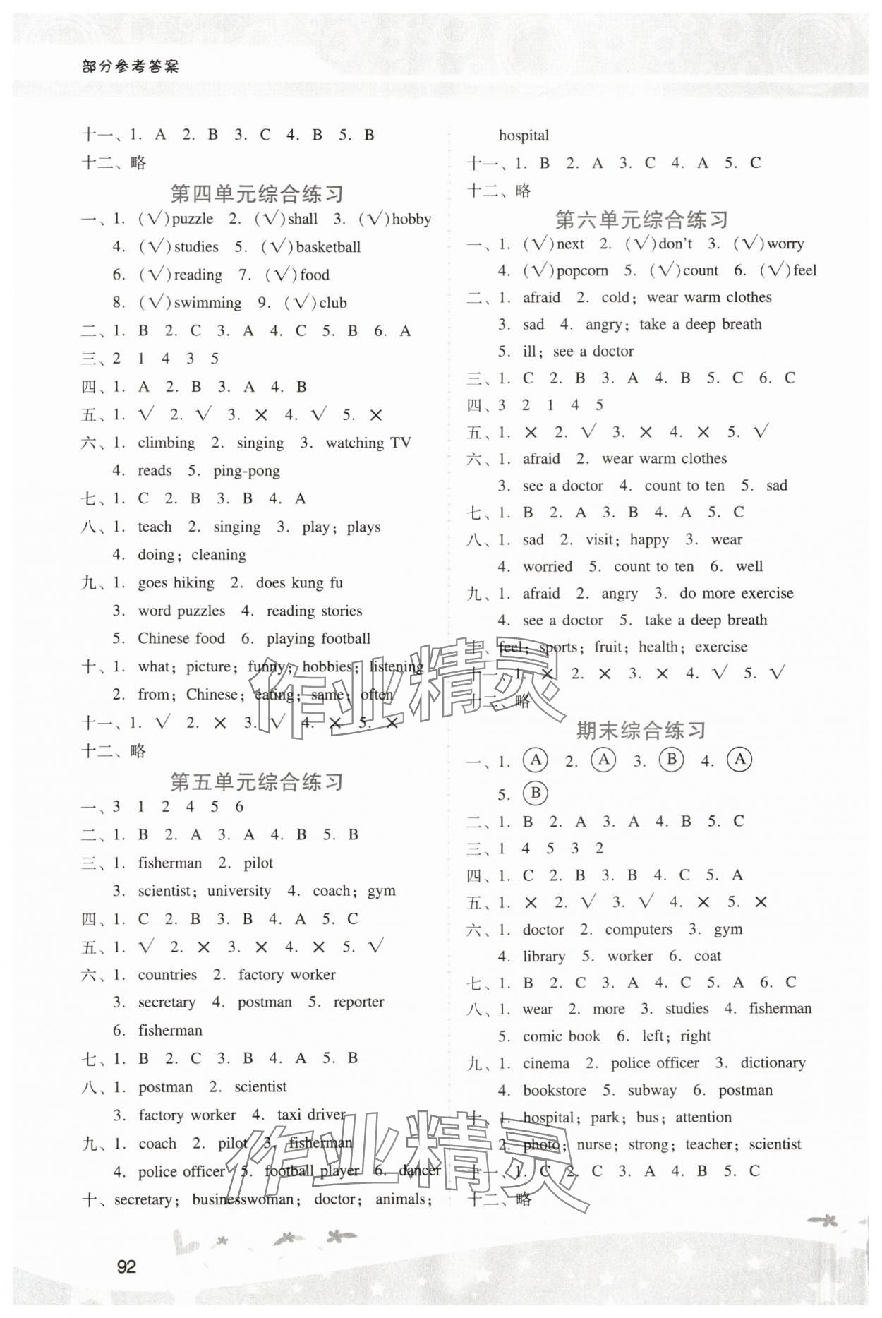 注:目前有些书本章节名称可能整理的还不是很完善,但都是按照顺序排列的,请同学们按照顺序仔细查找。练习册 2024年新课程学习辅导六年级英语上册人教版中山专版 答案主要是用来给同学们做完题方便对答案用的,请勿直接抄袭。