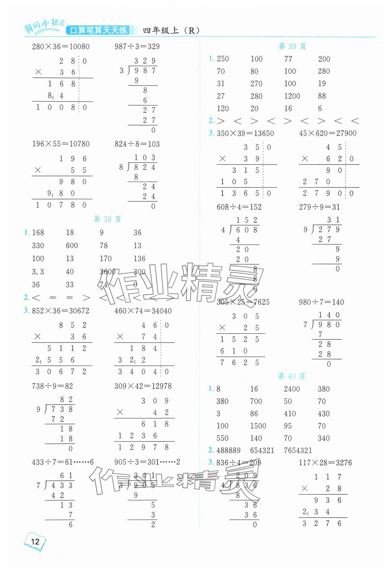 注:目前有些书本章节名称可能整理的还不是很完善,但都是按照顺序排列的,请同学们按照顺序仔细查找。练习册 2024年黄冈小状元口算笔算天天练四年级数学上册人教版 答案主要是用来给同学们做完题方便对答案用的,请勿直接抄袭。