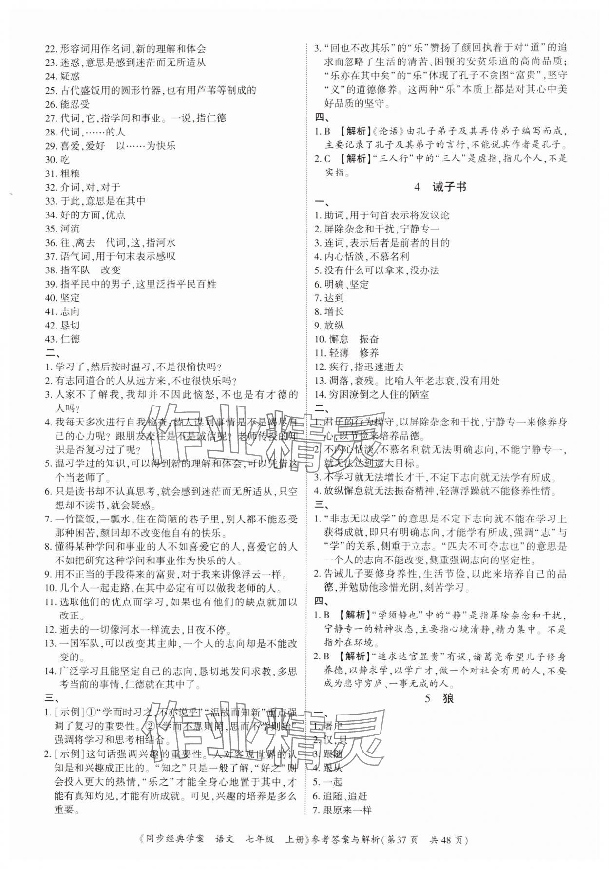 注:目前有些书本章节名称可能整理的还不是很完善,但都是按照顺序排列的,请同学们按照顺序仔细查找。练习册 2024年同步经典学案七年级语文上册人教版深圳专版 答案主要是用来给同学们做完题方便对答案用的,请勿直接抄袭。