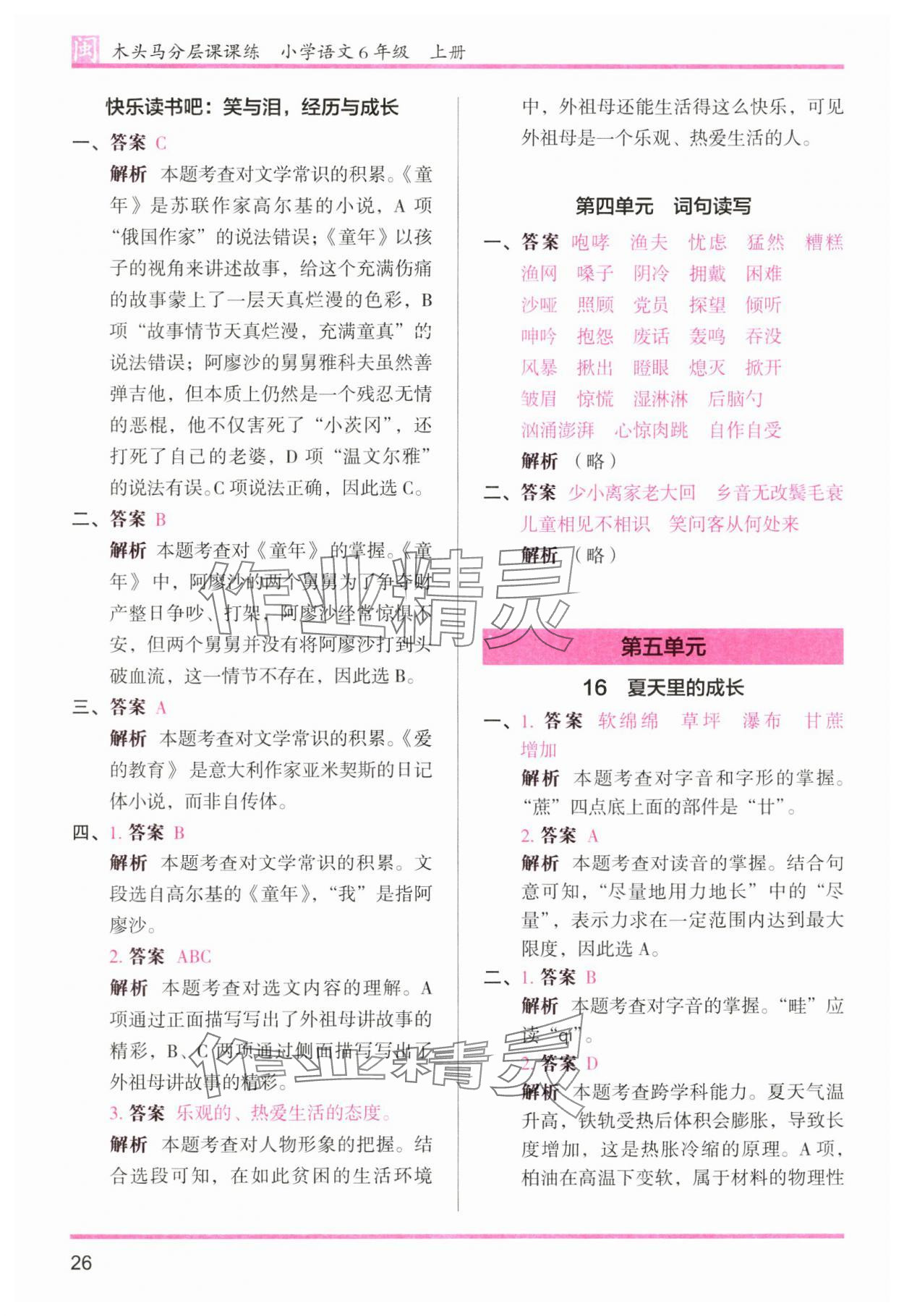 注:目前有些书本章节名称可能整理的还不是很完善,但都是按照顺序排列的,请同学们按照顺序仔细查找。练习册 2024年木头马分层课课练六年级语文上册人教版福建专版 答案主要是用来给同学们做完题方便对答案用的,请勿直接抄袭。
