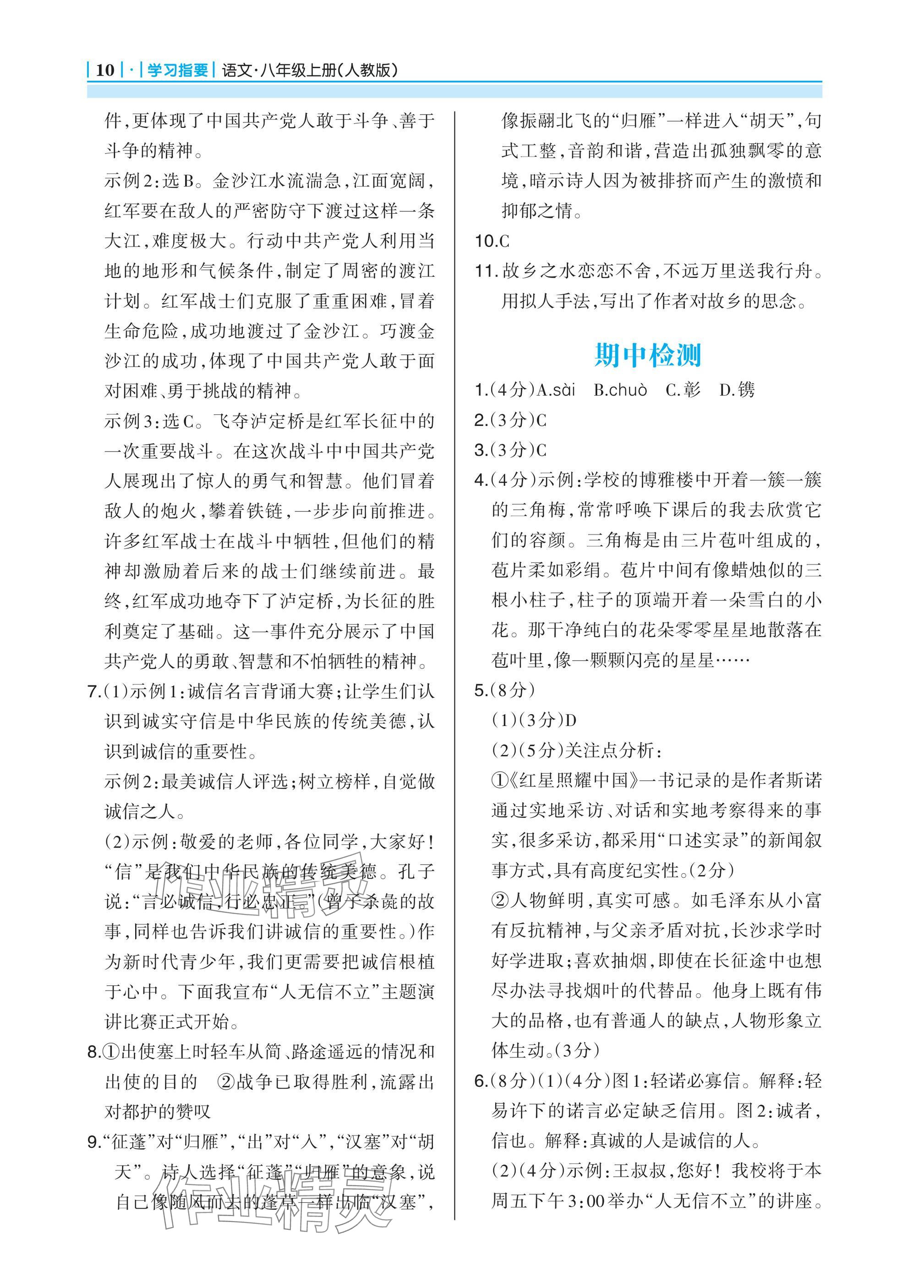 注:目前有些书本章节名称可能整理的还不是很完善,但都是按照顺序排列的,请同学们按照顺序仔细查找。练习册 2024年学习指要八年级语文上册人教版 答案主要是用来给同学们做完题方便对答案用的,请勿直接抄袭。