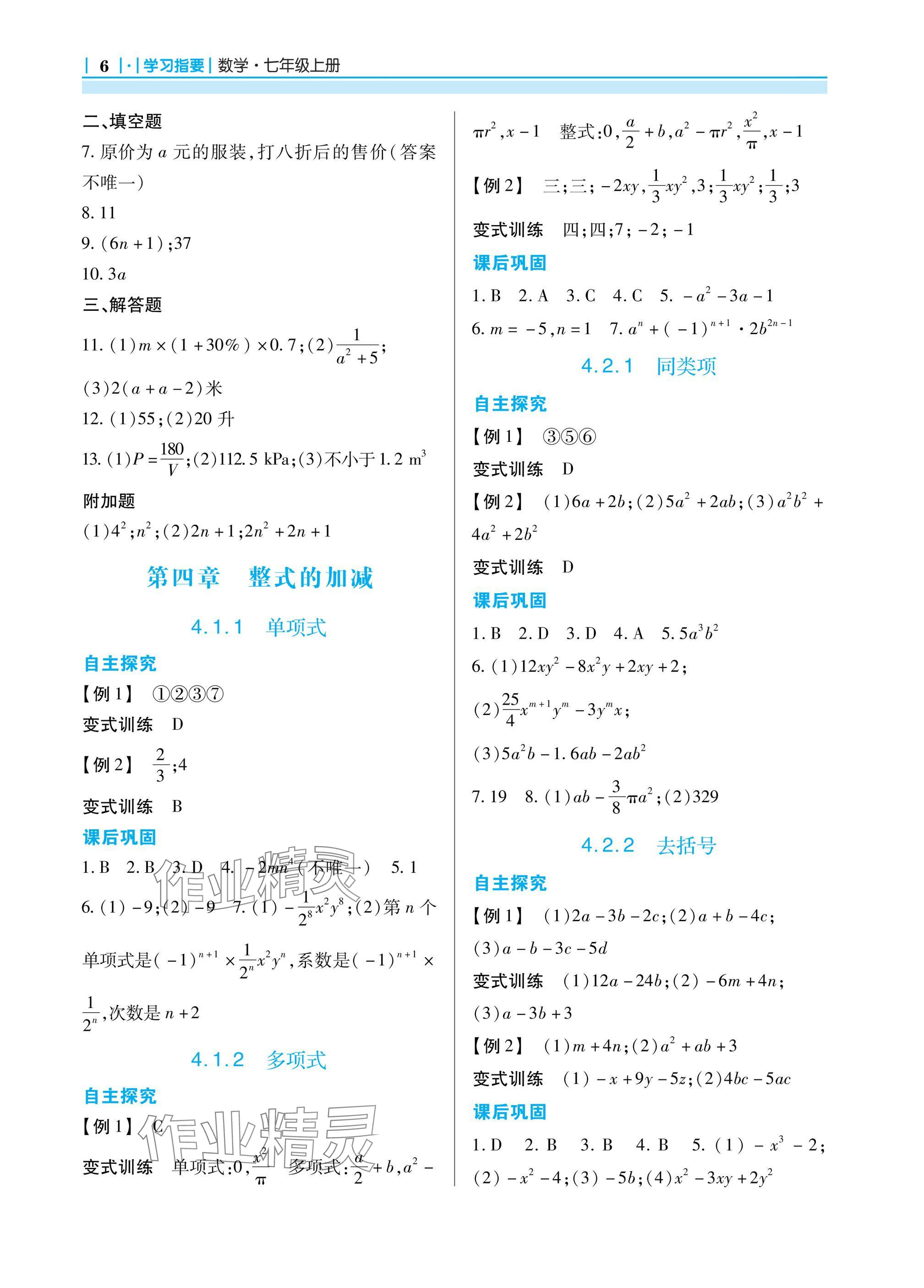 注:目前有些书本章节名称可能整理的还不是很完善,但都是按照顺序排列的,请同学们按照顺序仔细查找。练习册 2024年学习指要七年级数学上册人教版 答案主要是用来给同学们做完题方便对答案用的,请勿直接抄袭。