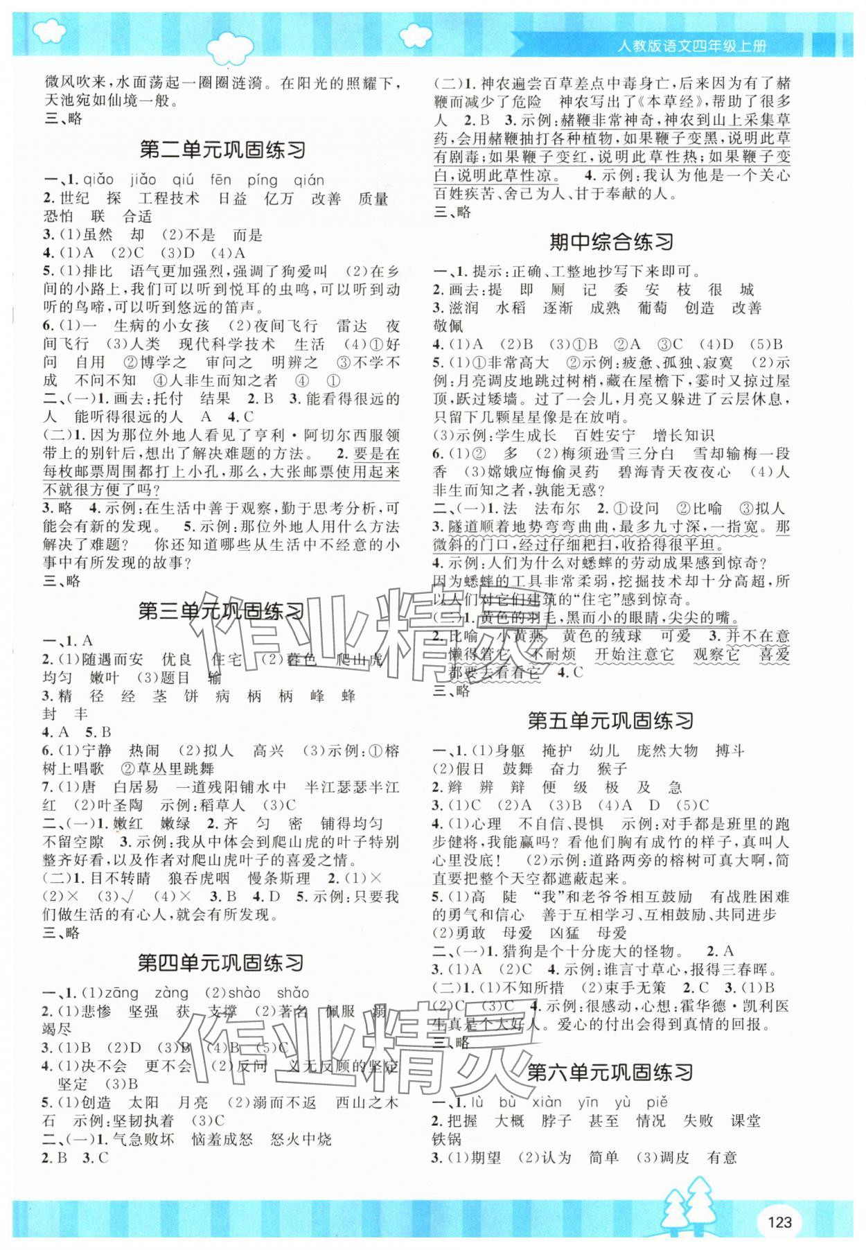 注:目前有些书本章节名称可能整理的还不是很完善,但都是按照顺序排列的,请同学们按照顺序仔细查找。练习册 2024年同步实践评价课程基础训练湖南少年儿童出版社四年级语文上册人教版 答案主要是用来给同学们做完题方便对答案用的,请勿直接抄袭。