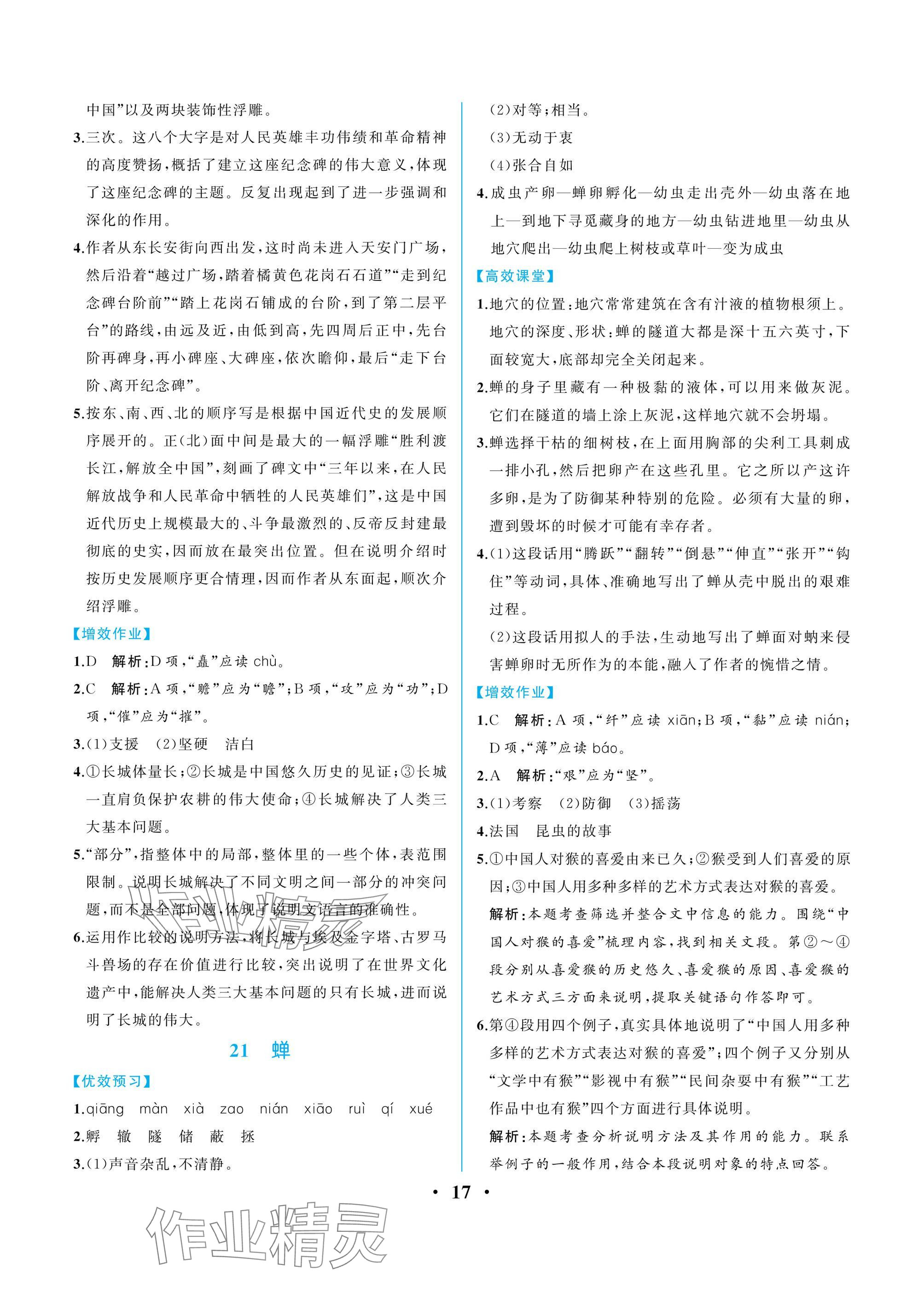 注:目前有些书本章节名称可能整理的还不是很完善,但都是按照顺序排列的,请同学们按照顺序仔细查找。练习册 2024年人教金学典同步解析与测评八年级语文上册人教版重庆专版 答案主要是用来给同学们做完题方便对答案用的,请勿直接抄袭。