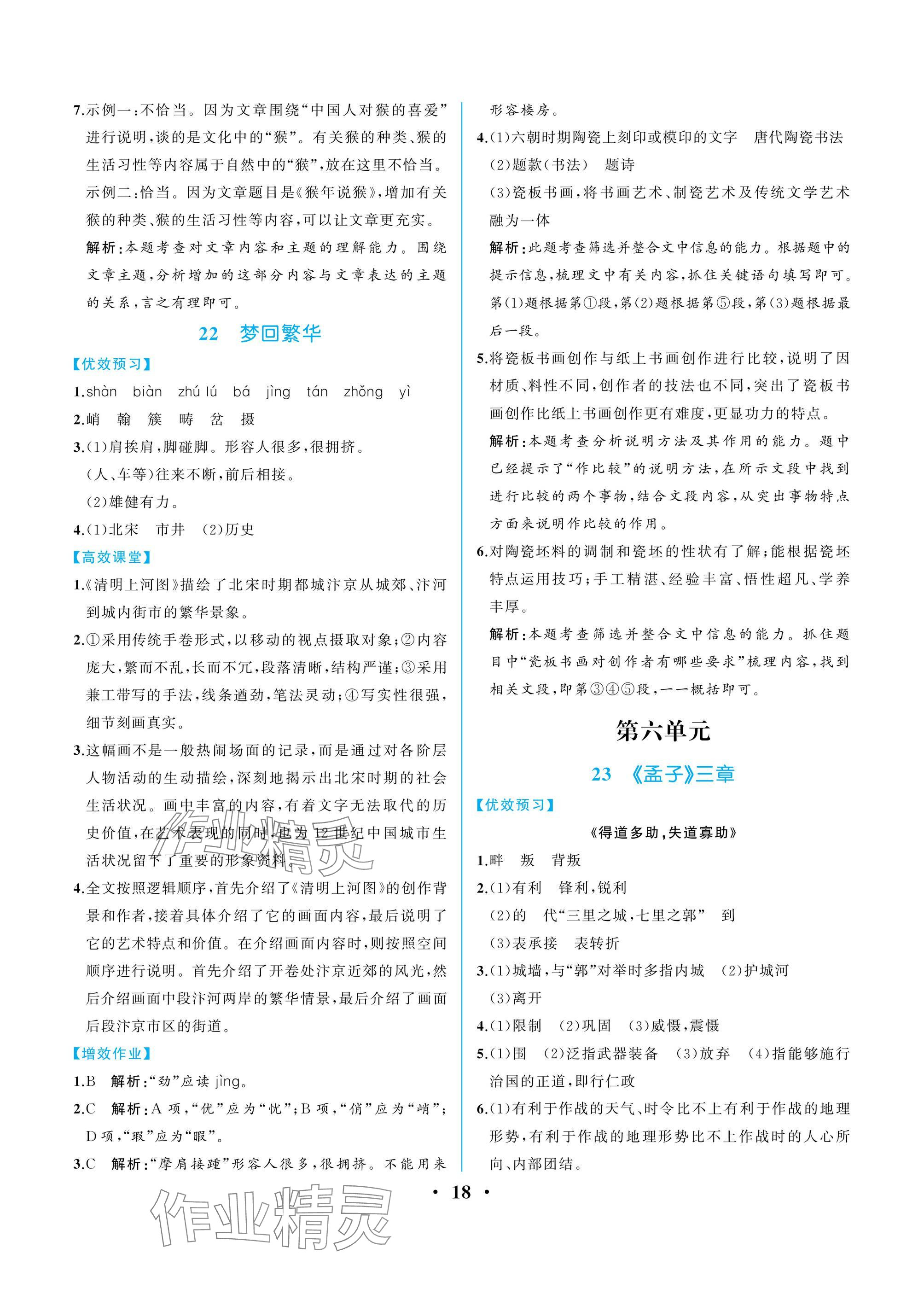 2024年人教金学典同步解析与测评八年级语文上册人教版重庆专版