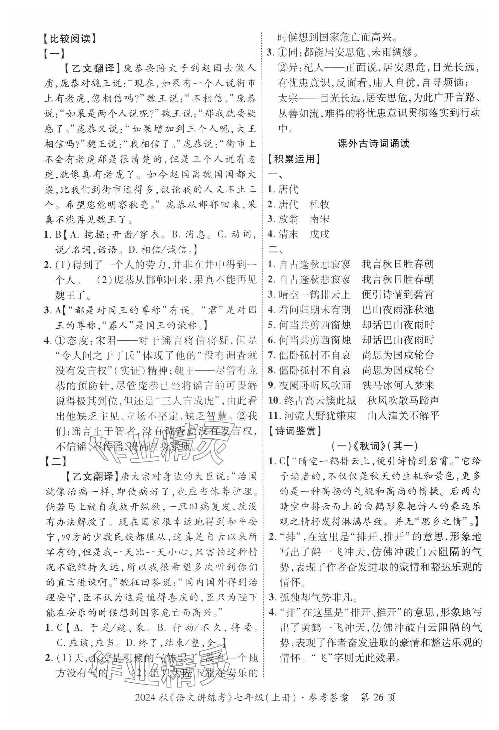 注:目前有些书本章节名称可能整理的还不是很完善,但都是按照顺序排列的,请同学们按照顺序仔细查找。练习册 2024年语文讲练考七年级上册人教版 答案主要是用来给同学们做完题方便对答案用的,请勿直接抄袭。