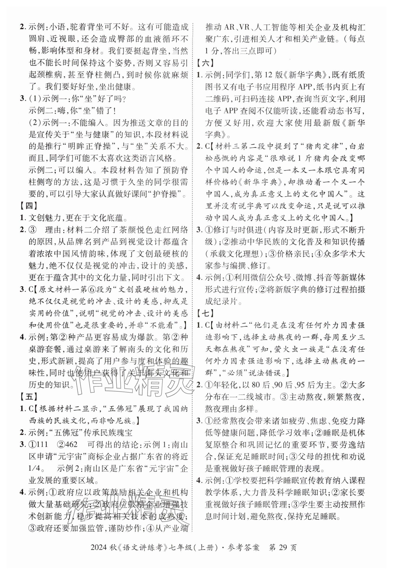 注:目前有些书本章节名称可能整理的还不是很完善,但都是按照顺序排列的,请同学们按照顺序仔细查找。练习册 2024年语文讲练考七年级上册人教版 答案主要是用来给同学们做完题方便对答案用的,请勿直接抄袭。