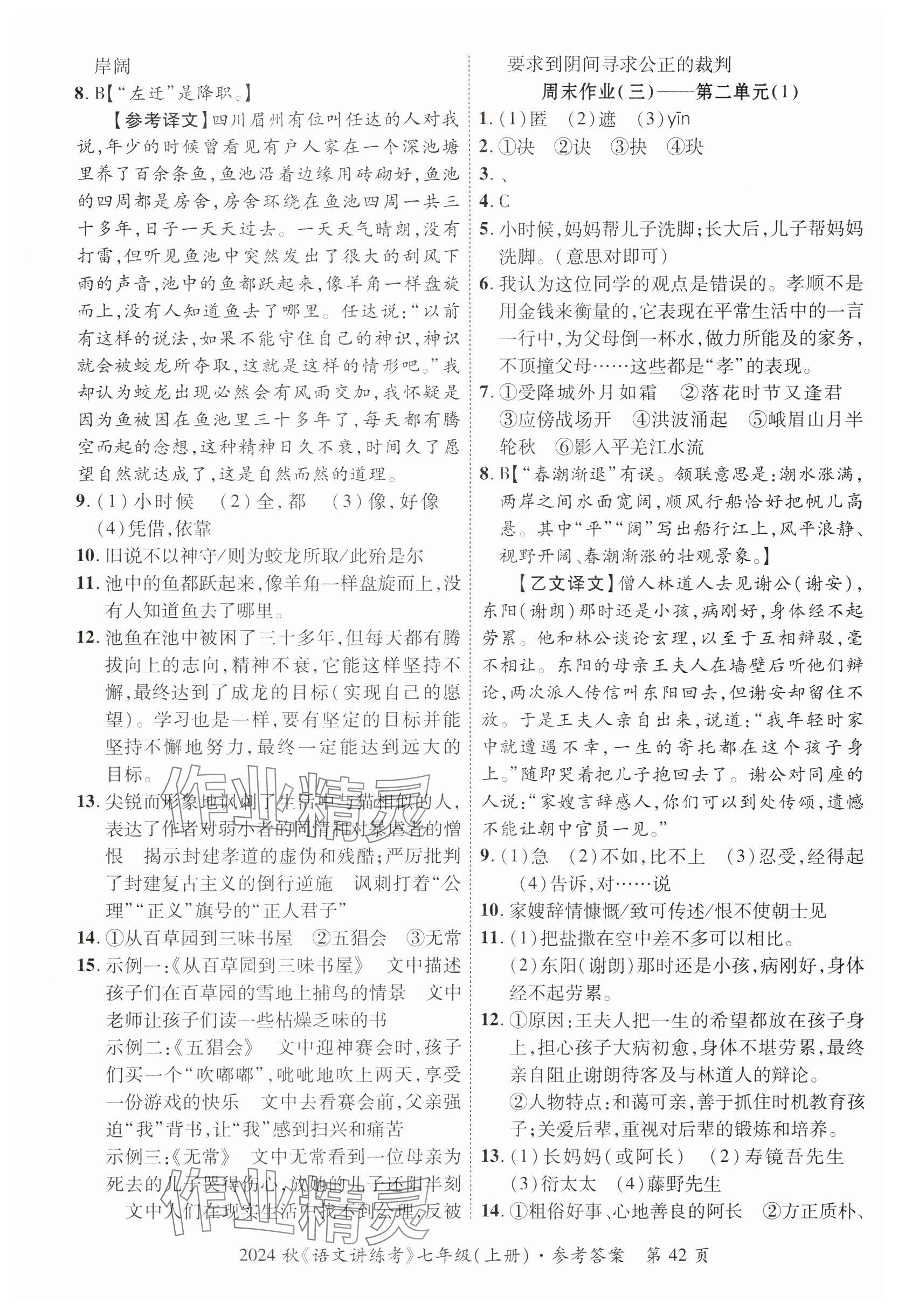 注:目前有些书本章节名称可能整理的还不是很完善,但都是按照顺序排列的,请同学们按照顺序仔细查找。练习册 2024年语文讲练考七年级上册人教版 答案主要是用来给同学们做完题方便对答案用的,请勿直接抄袭。
