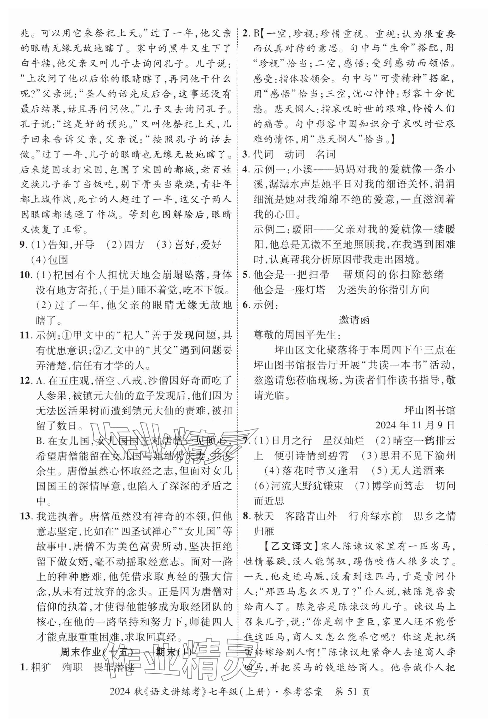注:目前有些书本章节名称可能整理的还不是很完善,但都是按照顺序排列的,请同学们按照顺序仔细查找。练习册 2024年语文讲练考七年级上册人教版 答案主要是用来给同学们做完题方便对答案用的,请勿直接抄袭。