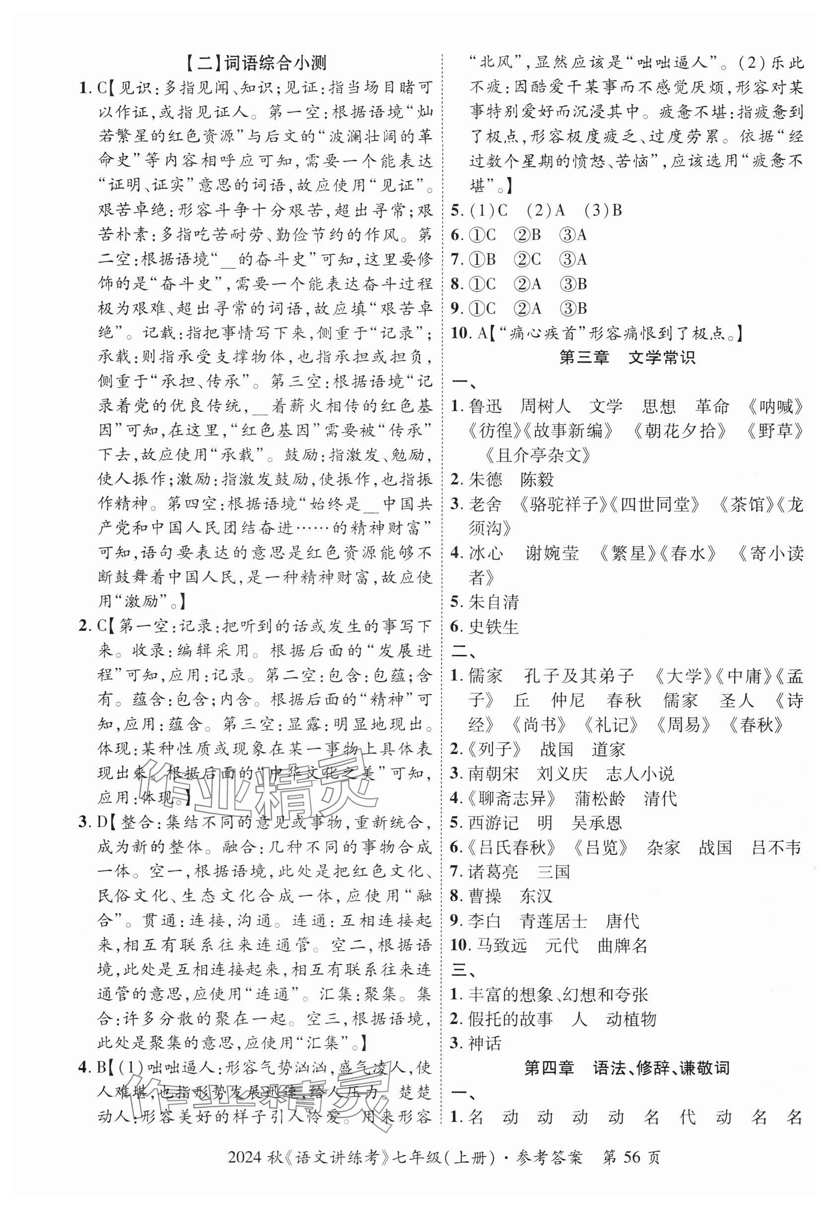 注:目前有些书本章节名称可能整理的还不是很完善,但都是按照顺序排列的,请同学们按照顺序仔细查找。练习册 2024年语文讲练考七年级上册人教版 答案主要是用来给同学们做完题方便对答案用的,请勿直接抄袭。