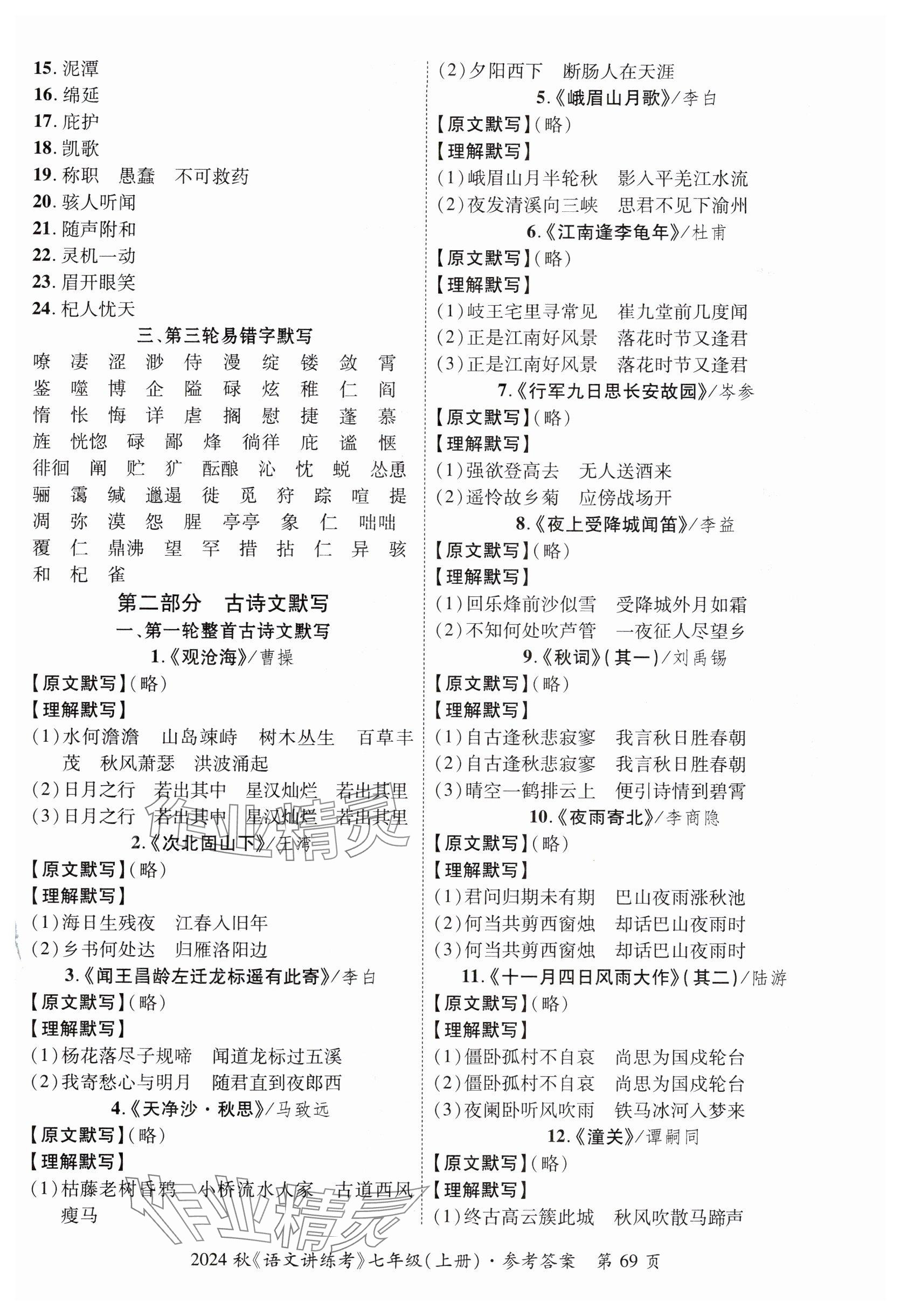 注:目前有些书本章节名称可能整理的还不是很完善,但都是按照顺序排列的,请同学们按照顺序仔细查找。练习册 2024年语文讲练考七年级上册人教版 答案主要是用来给同学们做完题方便对答案用的,请勿直接抄袭。