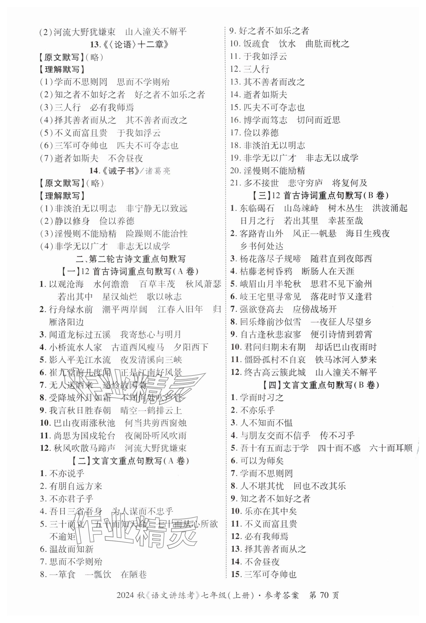 注:目前有些书本章节名称可能整理的还不是很完善,但都是按照顺序排列的,请同学们按照顺序仔细查找。练习册 2024年语文讲练考七年级上册人教版 答案主要是用来给同学们做完题方便对答案用的,请勿直接抄袭。