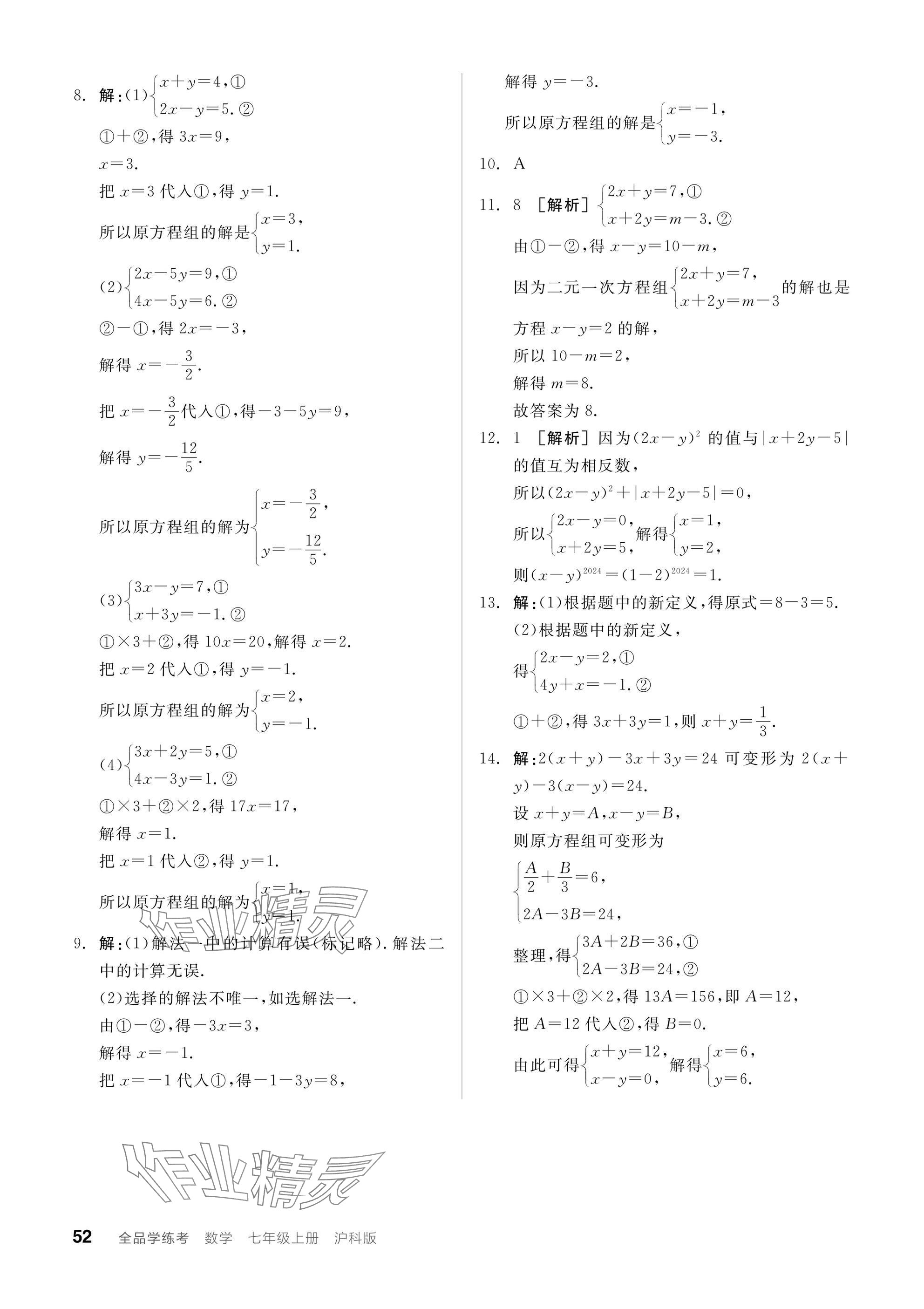 - 参考答案第52页