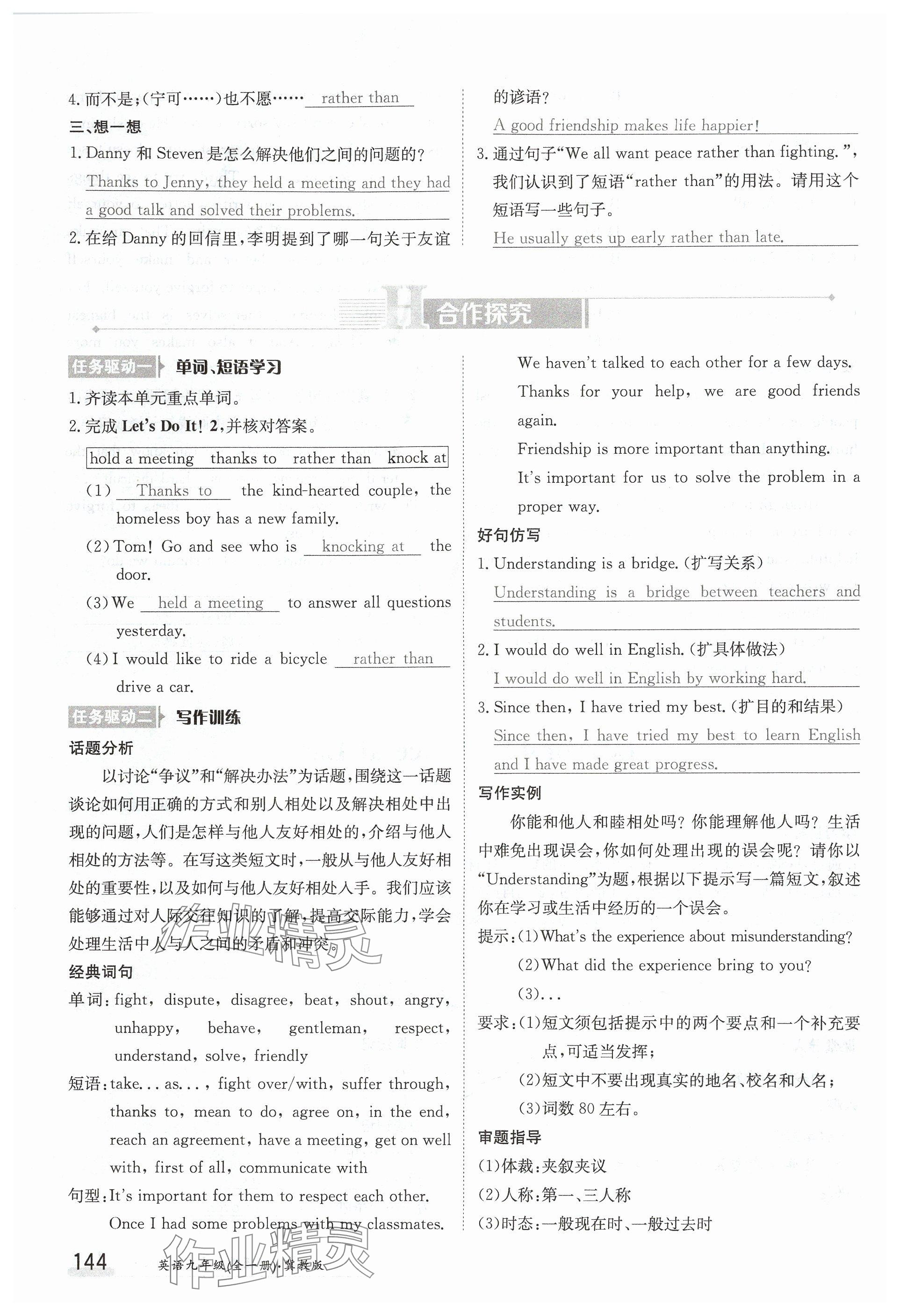 注:目前有些书本章节名称可能整理的还不是很完善,但都是按照顺序排列的,请同学们按照顺序仔细查找。练习册 2024年金太阳导学案九年级英语全一册冀教版 答案主要是用来给同学们做完题方便对答案用的,请勿直接抄袭。