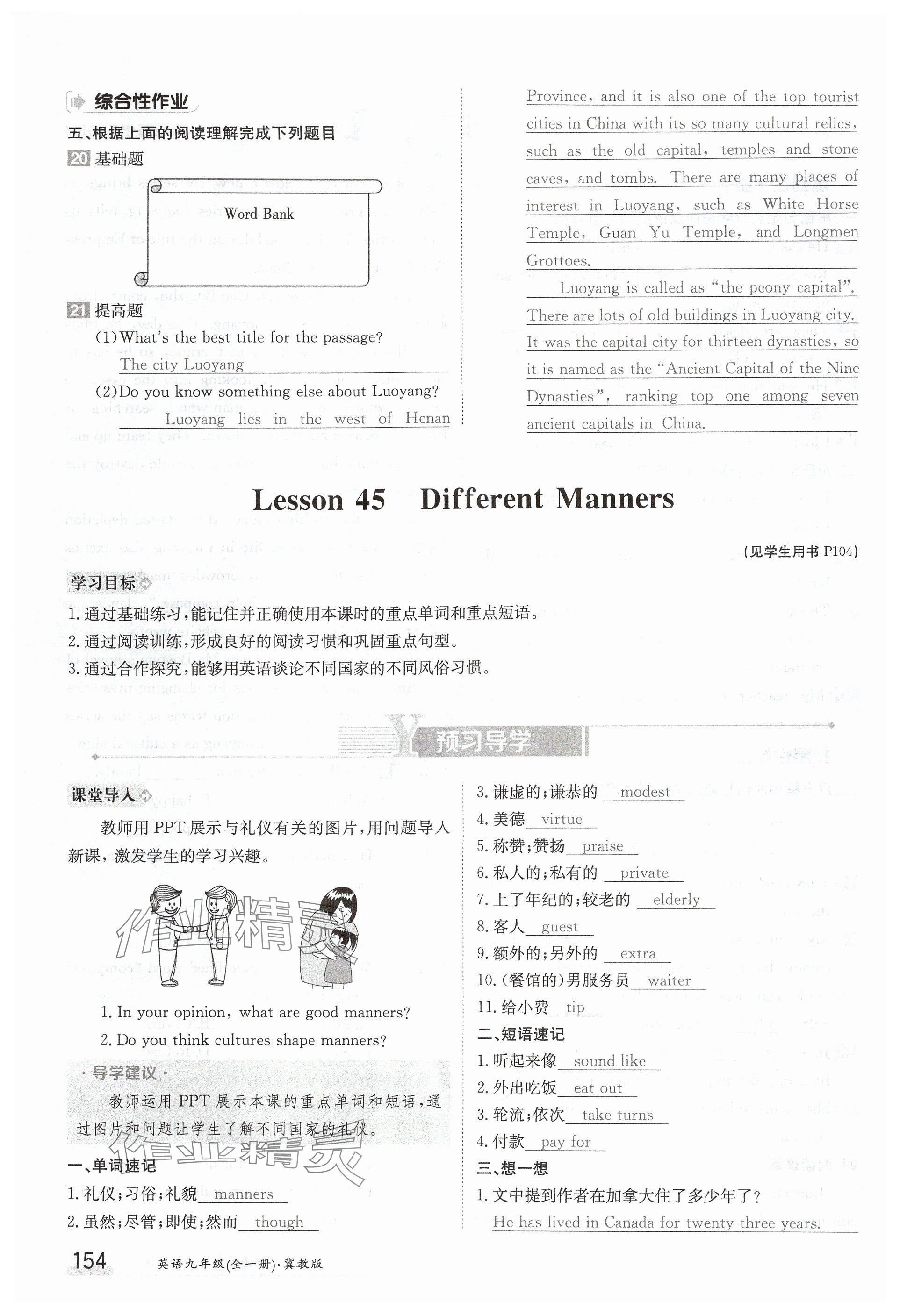 注:目前有些书本章节名称可能整理的还不是很完善,但都是按照顺序排列的,请同学们按照顺序仔细查找。练习册 2024年金太阳导学案九年级英语全一册冀教版 答案主要是用来给同学们做完题方便对答案用的,请勿直接抄袭。