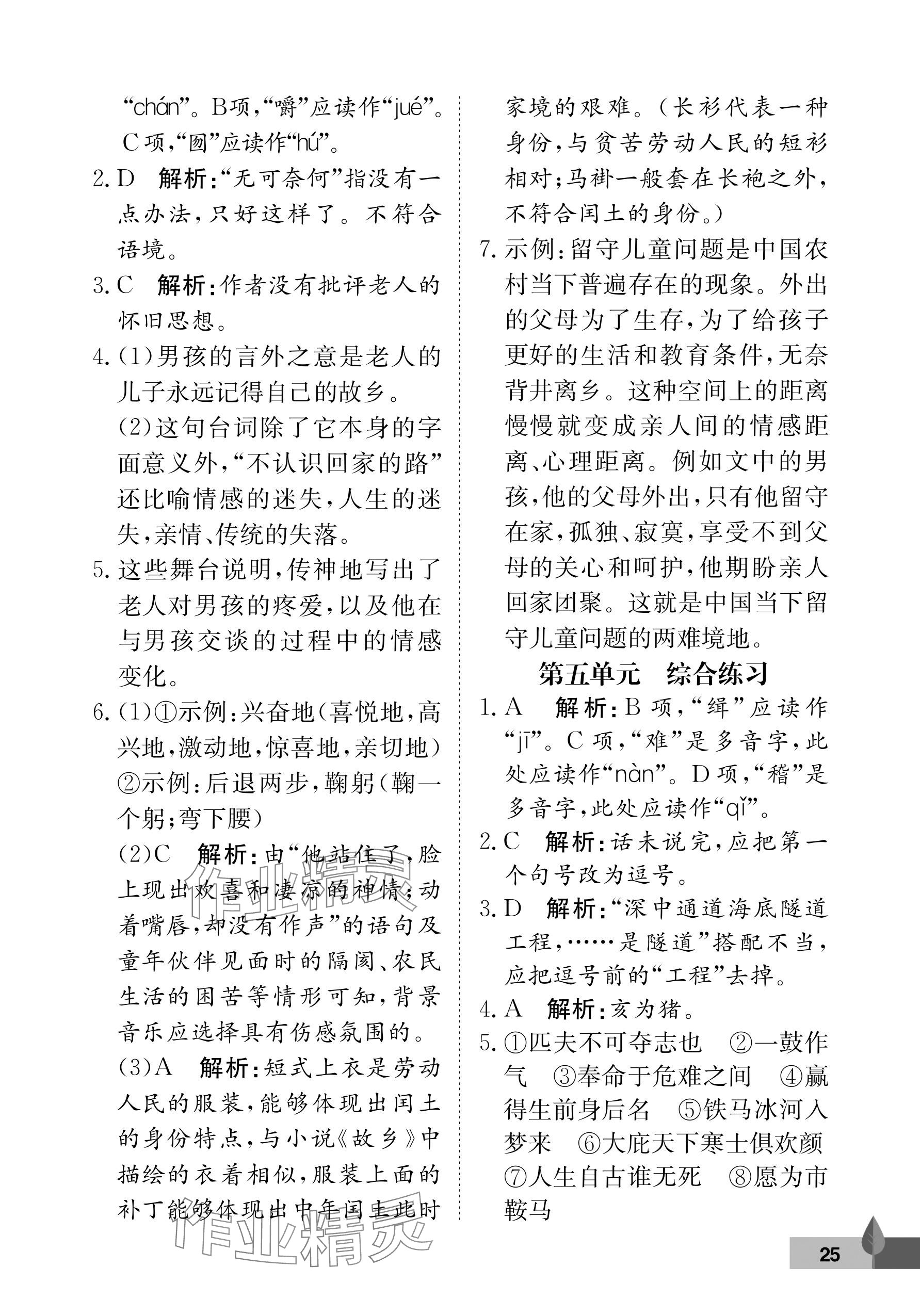注:目前有些书本章节名称可能整理的还不是很完善,但都是按照顺序排列的,请同学们按照顺序仔细查找。练习册 2025年黄冈作业本武汉大学出版社九年级语文下册人教版 答案主要是用来给同学们做完题方便对答案用的,请勿直接抄袭。