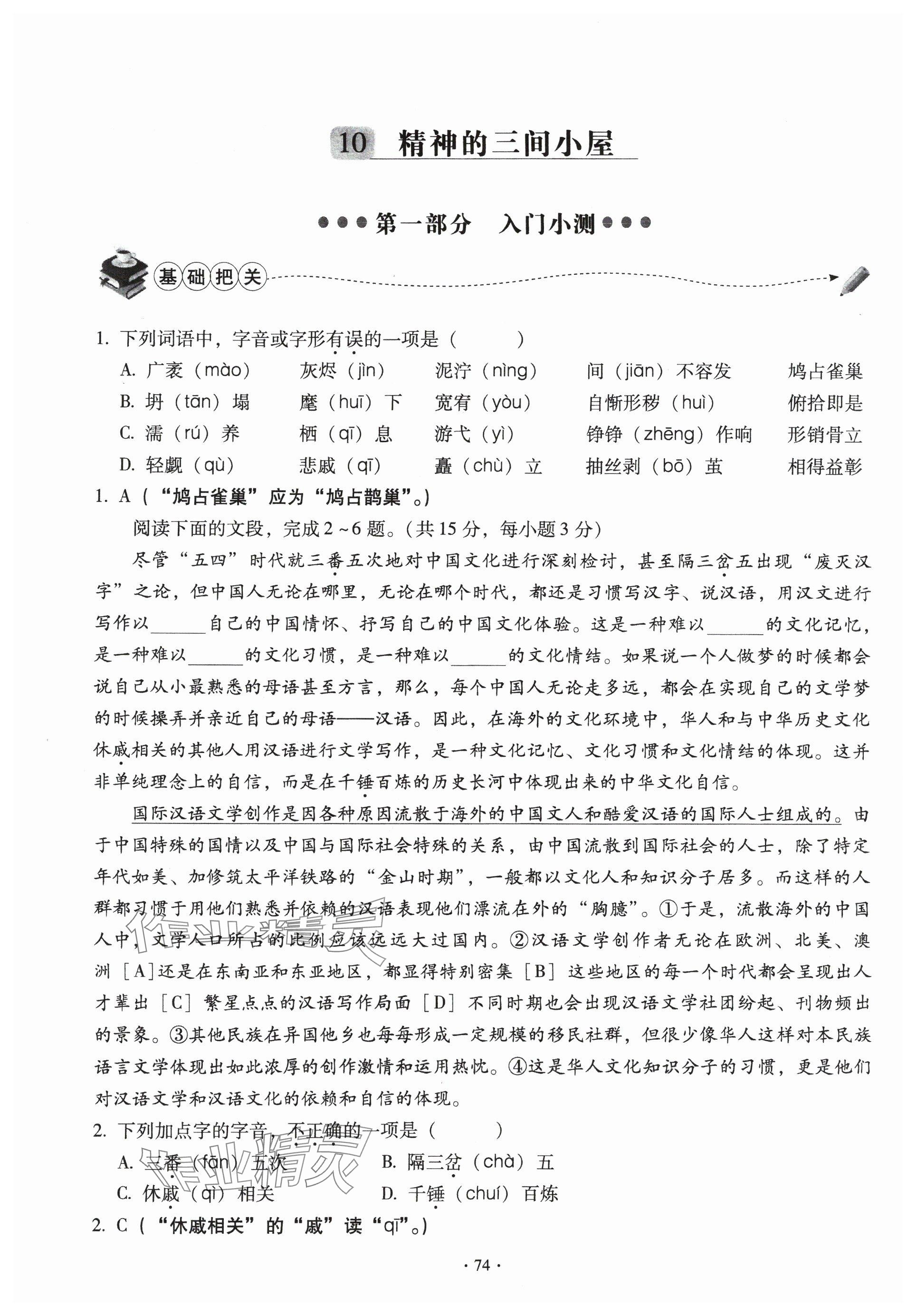 - 参考答案第74页