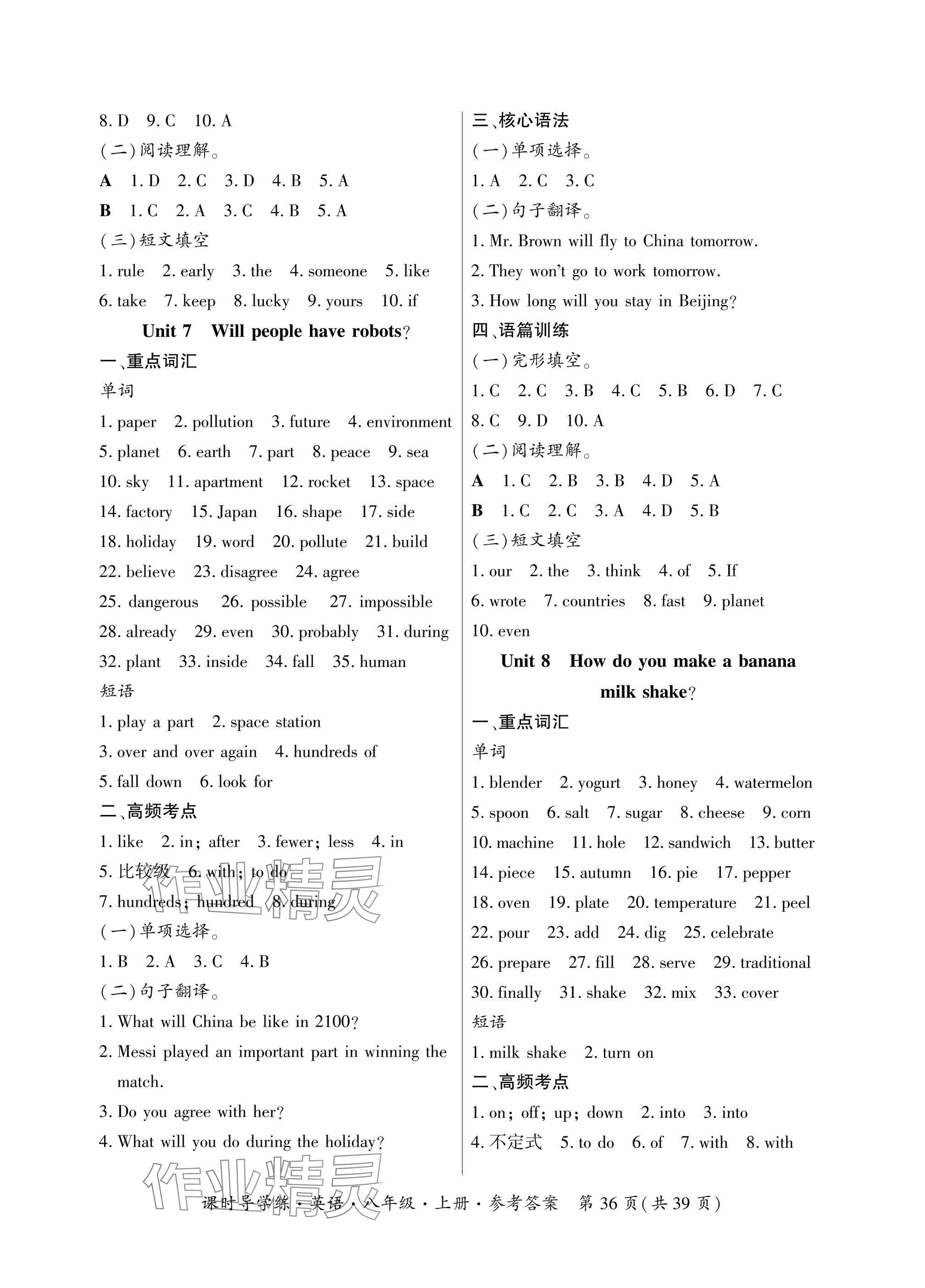 注:目前有些书本章节名称可能整理的还不是很完善,但都是按照顺序排列的,请同学们按照顺序仔细查找。练习册 2024年课时导学练八年级英语上册人教版广东专版 答案主要是用来给同学们做完题方便对答案用的,请勿直接抄袭。