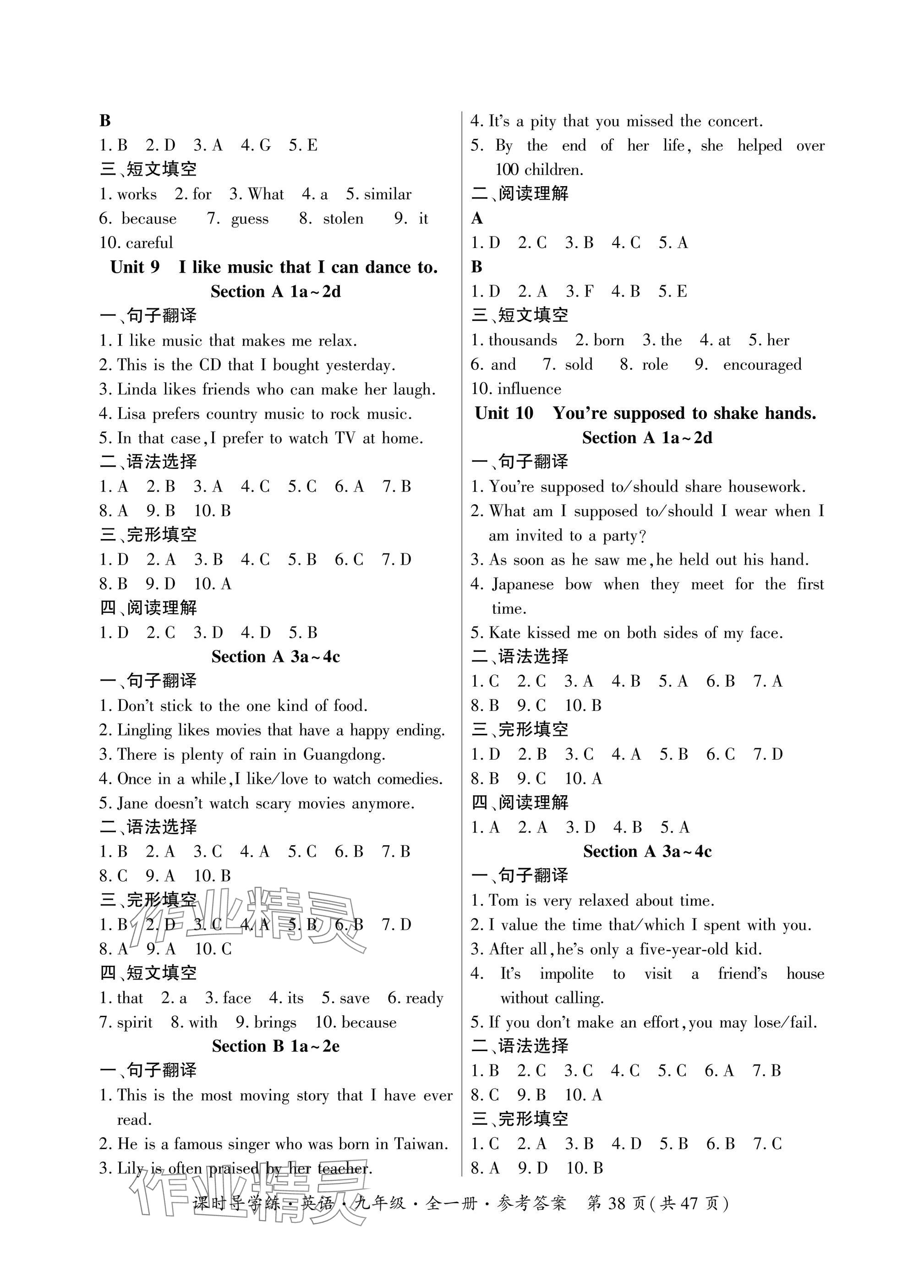 注:目前有些书本章节名称可能整理的还不是很完善,但都是按照顺序排列的,请同学们按照顺序仔细查找。练习册 2024年课时导学练九年级英语全一册人教版广东专版 答案主要是用来给同学们做完题方便对答案用的,请勿直接抄袭。