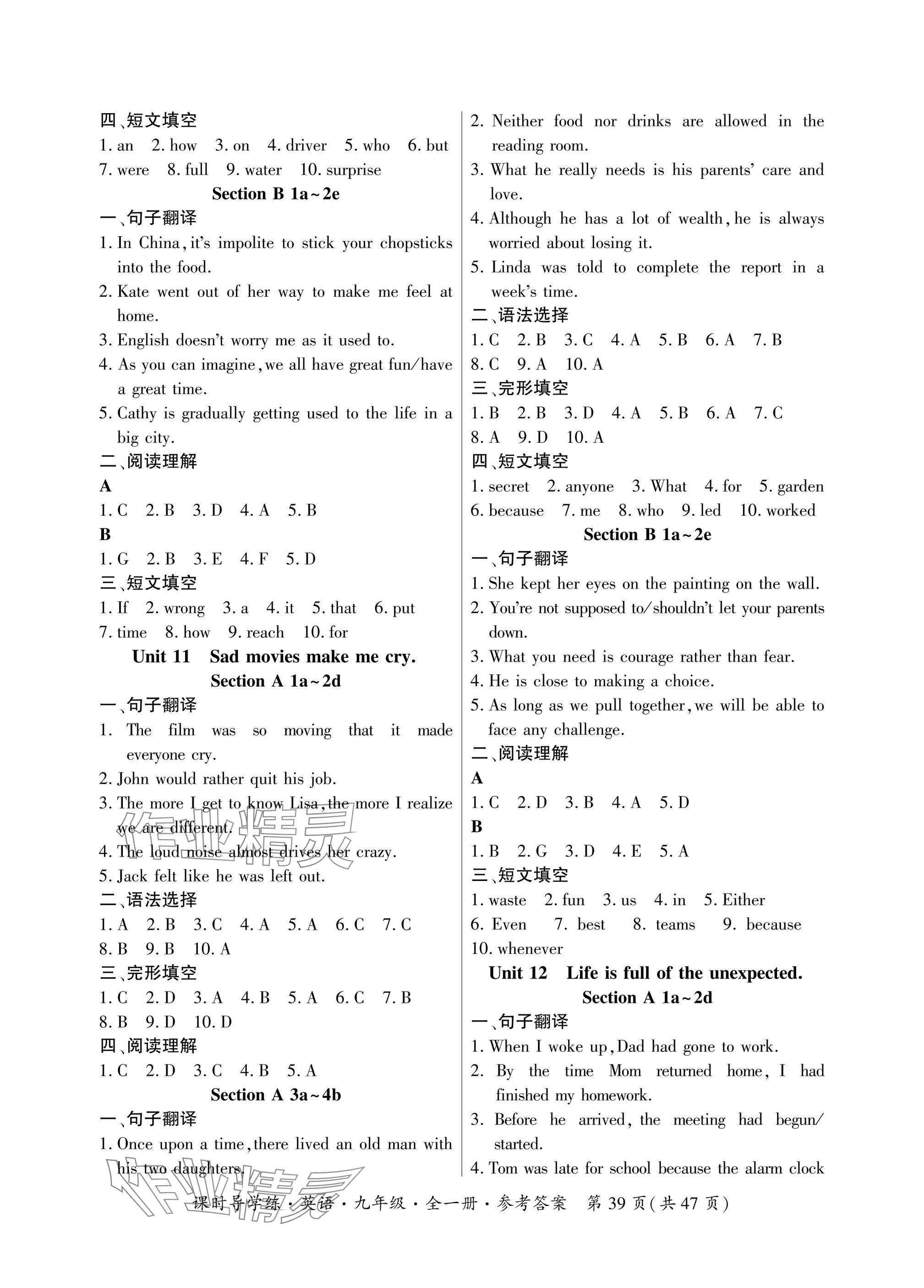 注:目前有些书本章节名称可能整理的还不是很完善,但都是按照顺序排列的,请同学们按照顺序仔细查找。练习册 2024年课时导学练九年级英语全一册人教版广东专版 答案主要是用来给同学们做完题方便对答案用的,请勿直接抄袭。